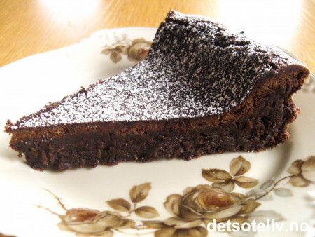 Siden denne sjokoladekaken ikke inneholder noe hvetemel, blir den litt klissete i konsistensen. Det er slik den skal være. Den stivner til om den får stå lenge i kjøleskapet fordi smøret og sjokoladen i kakedeigen da blir hardt. Dermed blir kaken mye lettere å få ut av formen, og det blir lettere å dra av bakepapiret uten at kaken går i stykker. Kaken er også lettere å skjære i pene serveringsstykker om den er kald. Kaken blir myk og klissete igjen om den står en stund i romtemperatur, og vil du har flytende sjokoladekake, kan du ha kakestykket noen sekunder i mikroen.