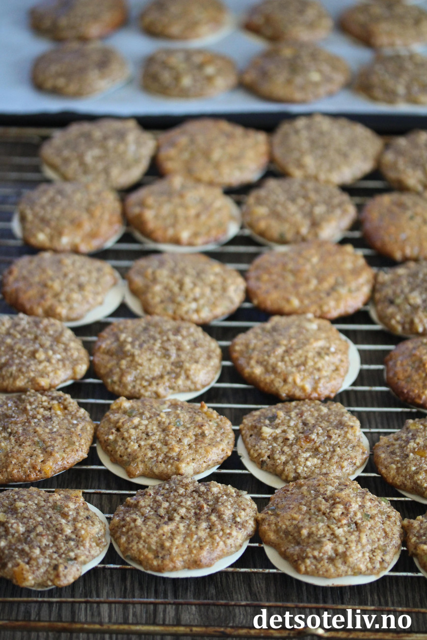 ♥ Legg de ferdige kakene i en kakeboks eller plastpose, og oppbevar dem kjølig slik at de ikke blir klissete. Kakene er kjempefine å fryse.