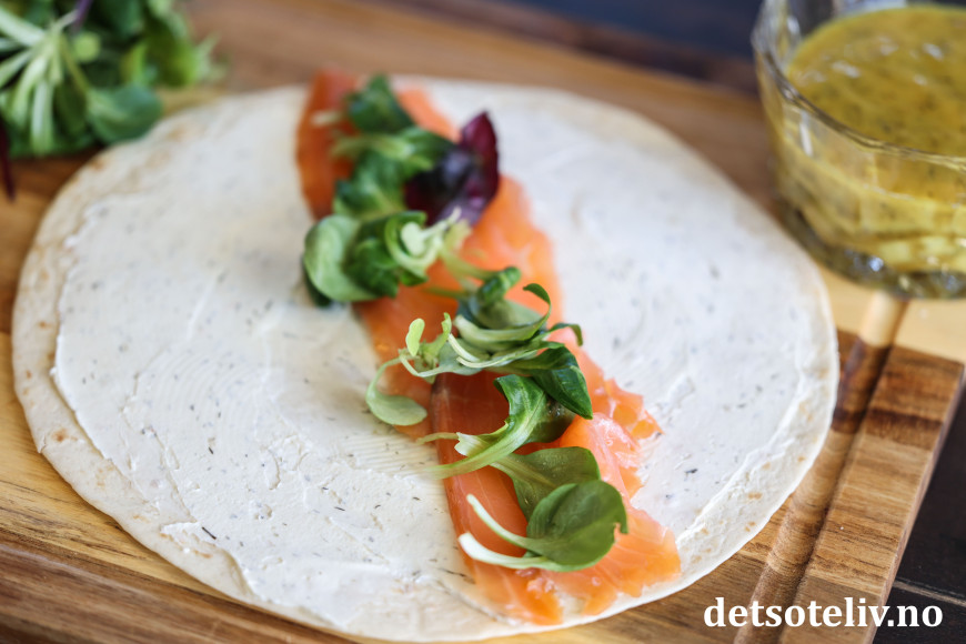 Kjempegode lefseruller med laks og sennepssaus! 🤩