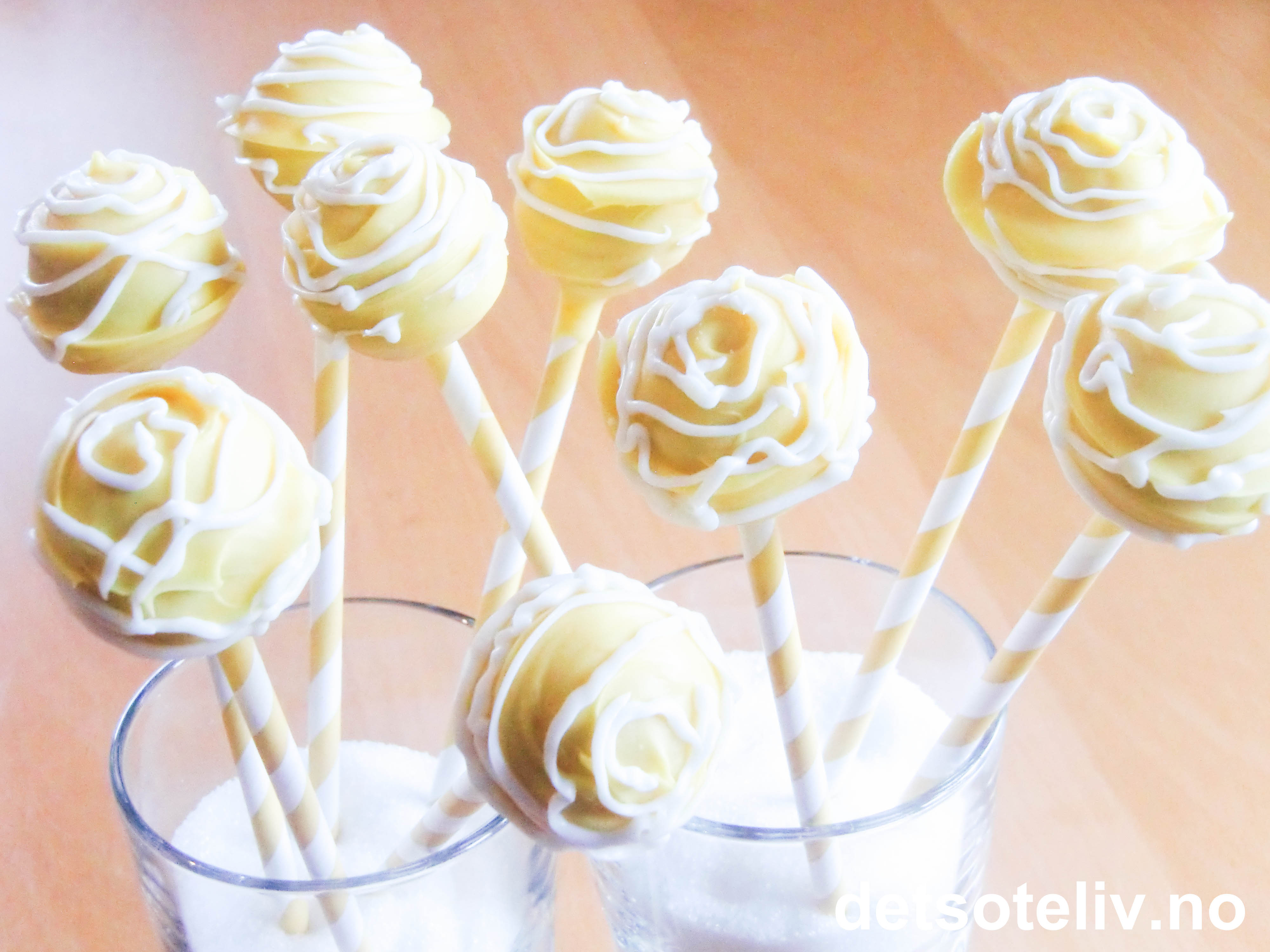 Her er skjønne "Lemon Cake Pops" laget av hjemmelaget sitronkake og fantastisk god sitronkrem.