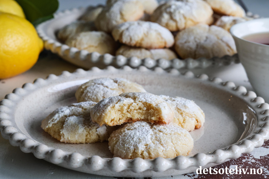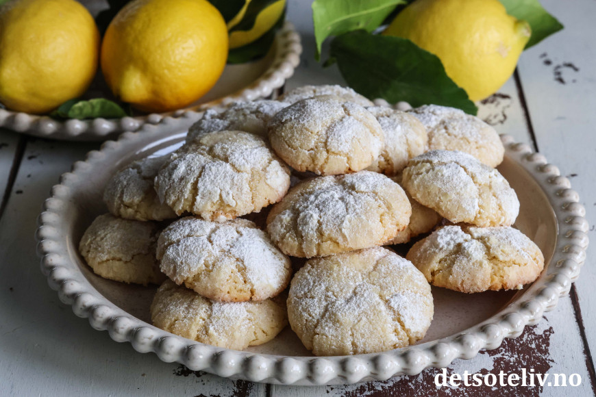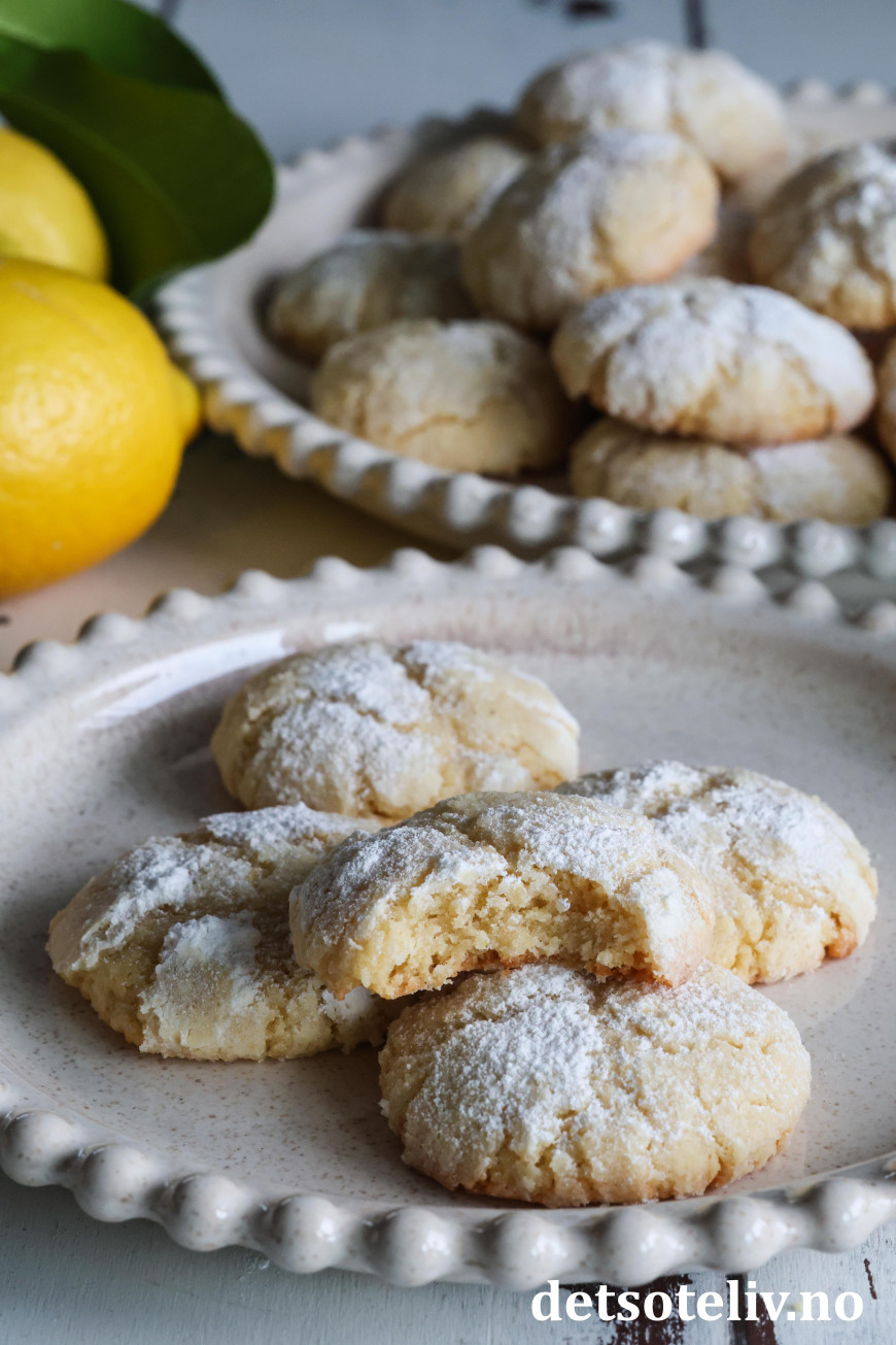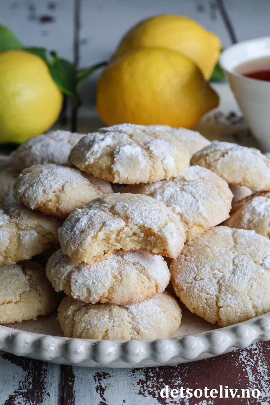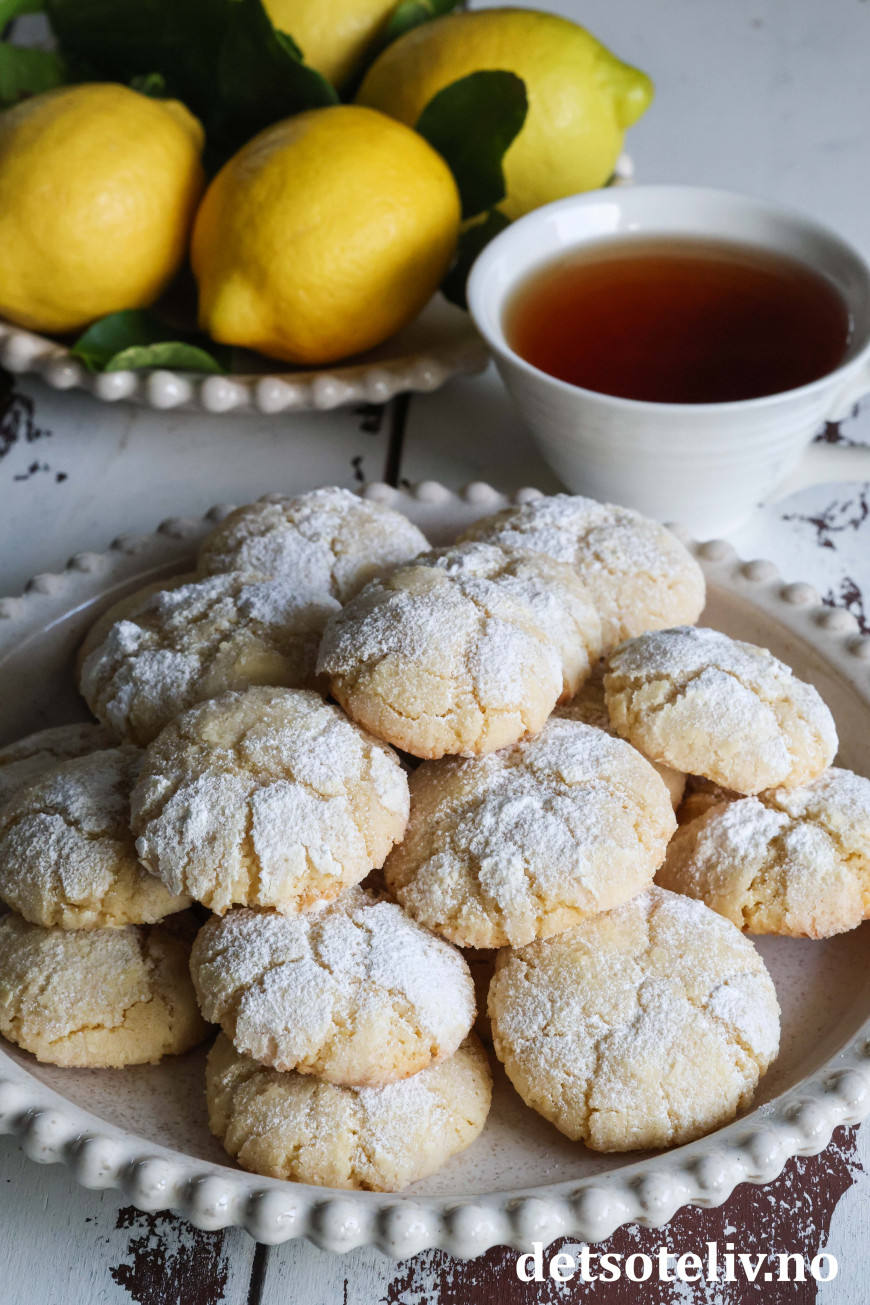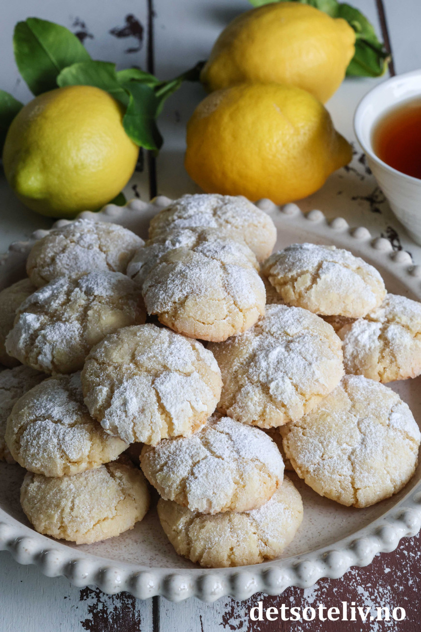 Dette er populære, amerikanske Lemon Crinkle Cookies, som har nydelig sitronsmak.