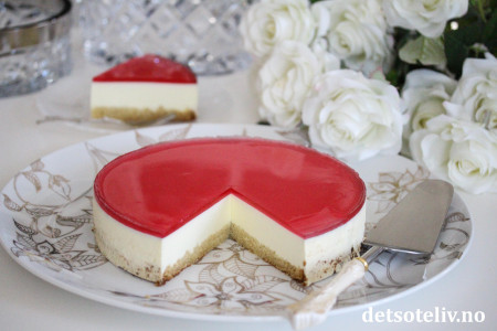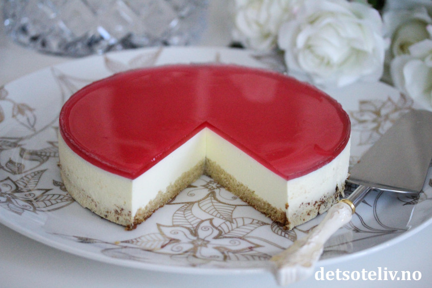 ♥ Denne nydelige fromasjkaken holder seg god i flere dager og kan gjerne lages helt klar dagen før servering.