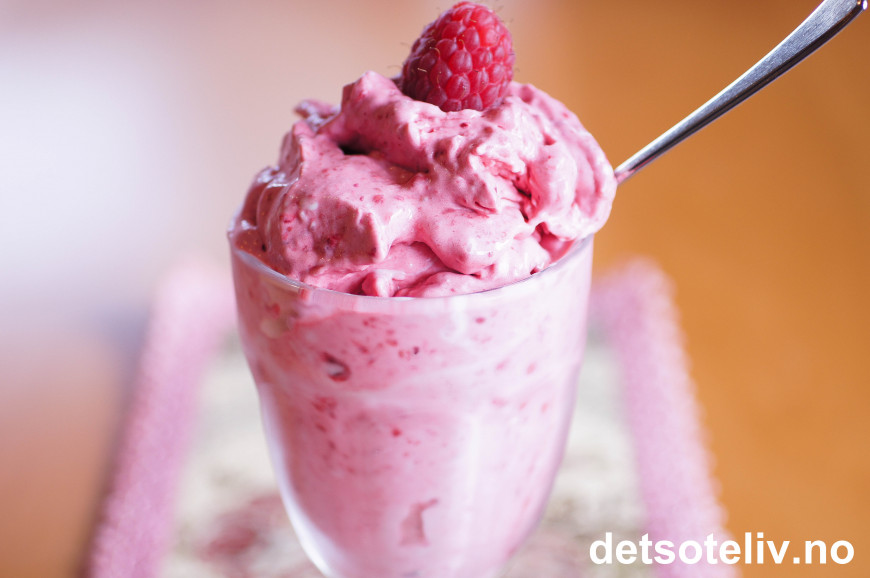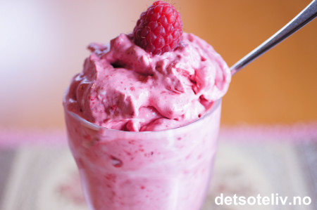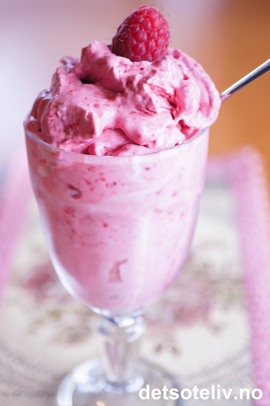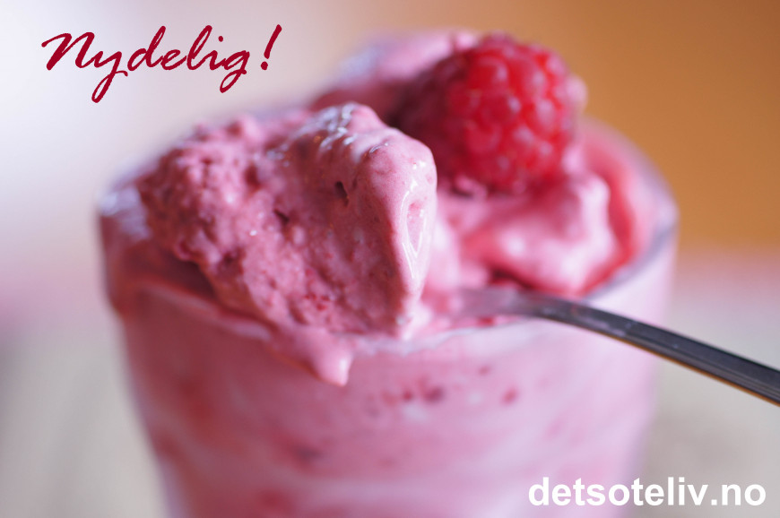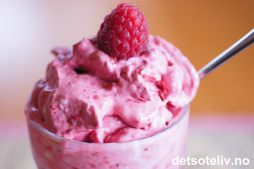 Da kan jeg anbefale denne FANTASTISK DEILIGE bringebærisen som er superlettvint å lage!