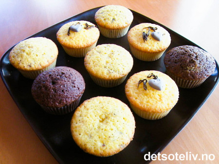 Stek muffinsene midt i ovnen ved 180°C i ca 10-12 min.