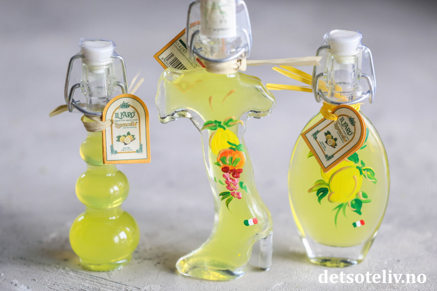 ♥ Limoncello er en italiensk sitronlikør som også kjøpes på polet (med mindre du har hjemmelaget limoncello 😊 ). De søte småflaskene med Limoncello har jeg kjøpt i Italia.