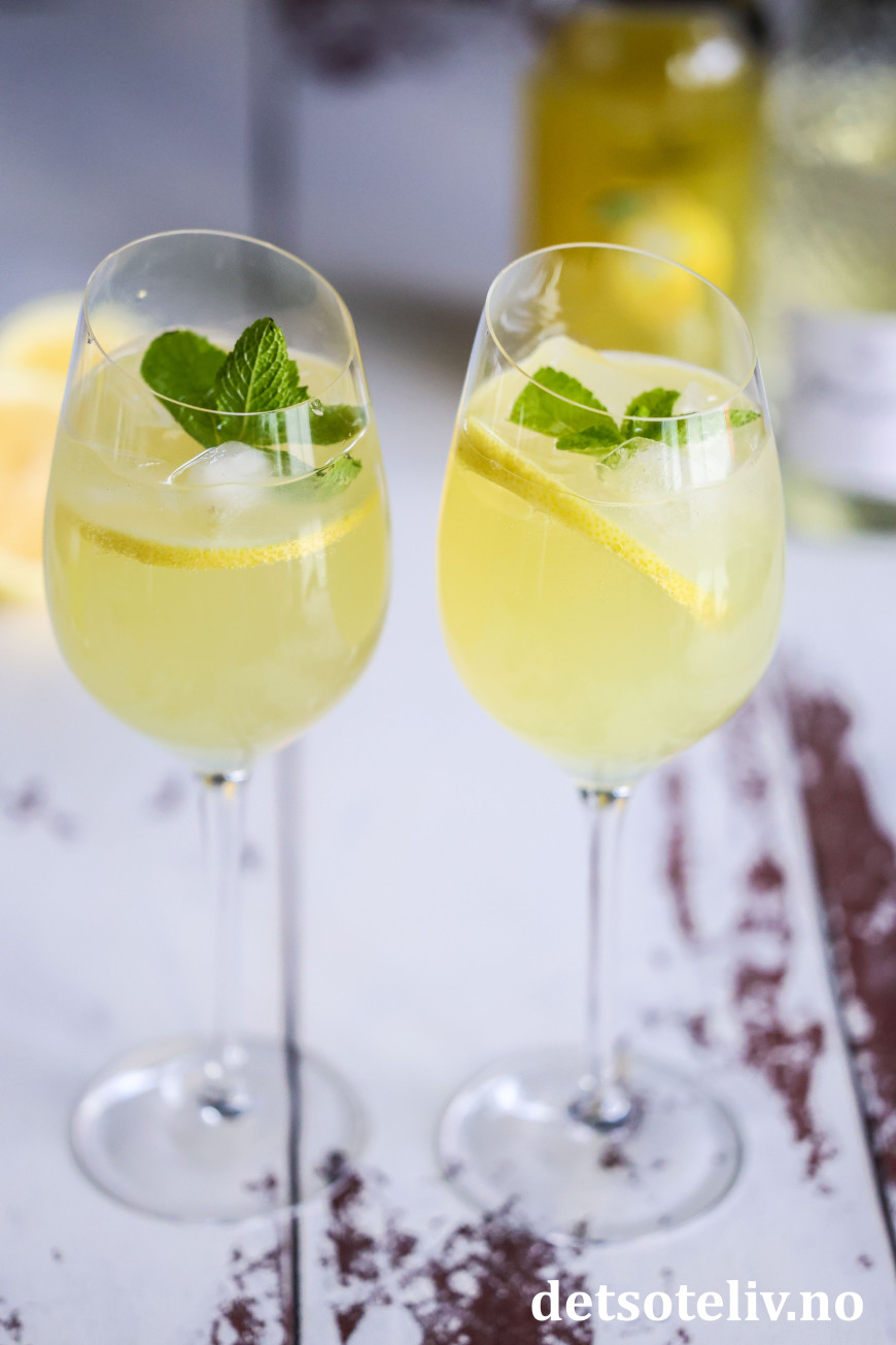Tilsett prosecco, Limoncello og til slutt sodavann. Rør raskt rundt og legg en sitronskive og eventuelt noen mynteblader i hvert glass.