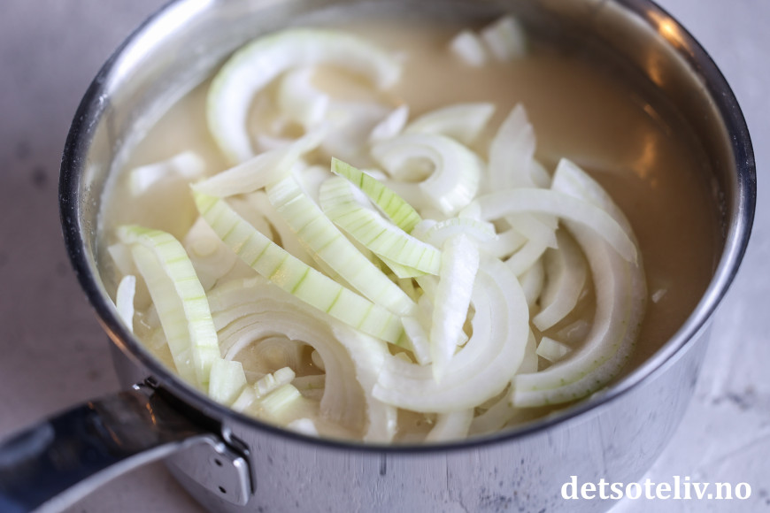 Ha den oppskjærte løken i kjelen.