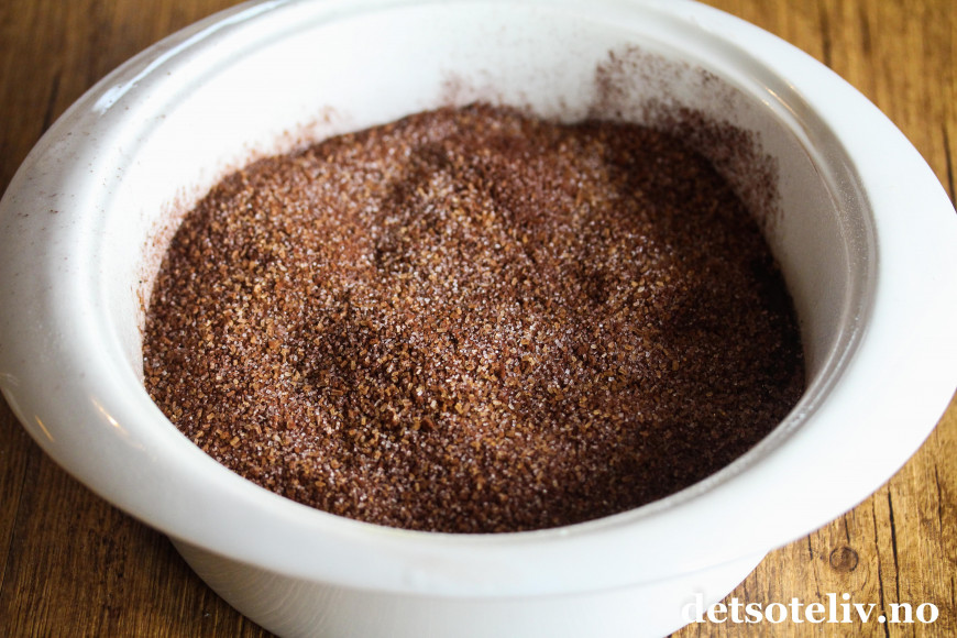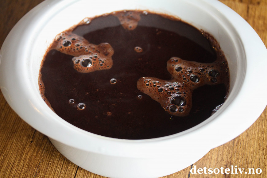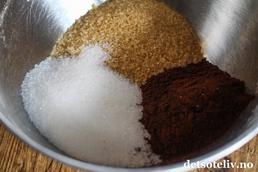 Bland alt til sjokoladedeigen. Den blir nokså fast og tykk i konsistensen.