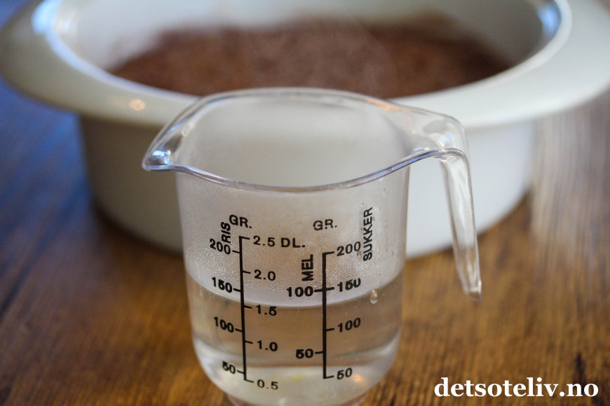 NB! Det er meningen at vannet skal legge seg oppå deigen, så ikke rør rundt i formen.
