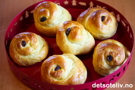 Stek "Lussebollene" på midterste rille i ovnen ved 210°C i 12-15 min.