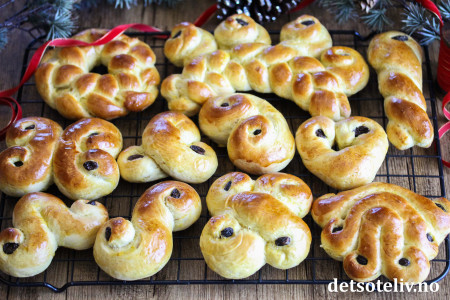 ♥ Se også Luciaboller (Lussekatter med kesam), Lusseboller, Safranboller og mange flere varianter bakst til Luciadagen HER på Det søte liv.
