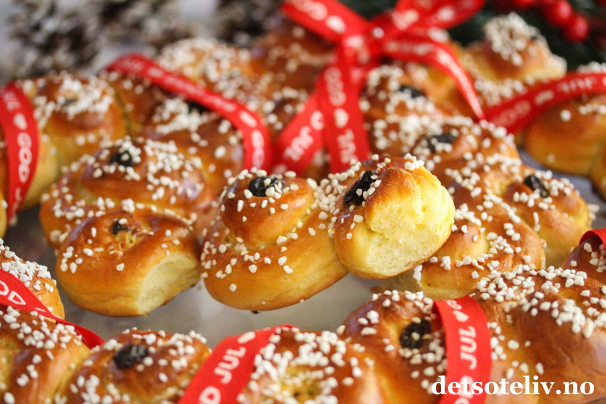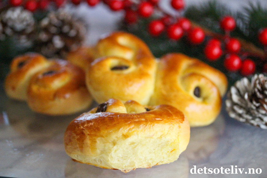 Til Luciadagen den 13. desember hører det med å bake nydelige, myke Lussekatter, med rosiner og safran. Du finner mange nydelige baketips til Luciadagen her.