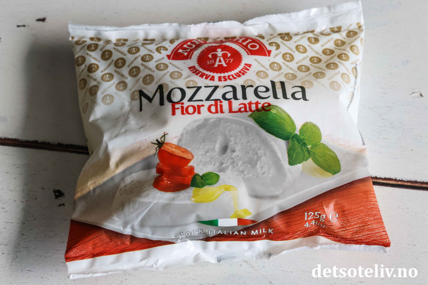 ♥ Fersk mozzarella er formet som kuler og fås kjøpt i poser der ostekulene ligger i lake (à 125 gram hver).