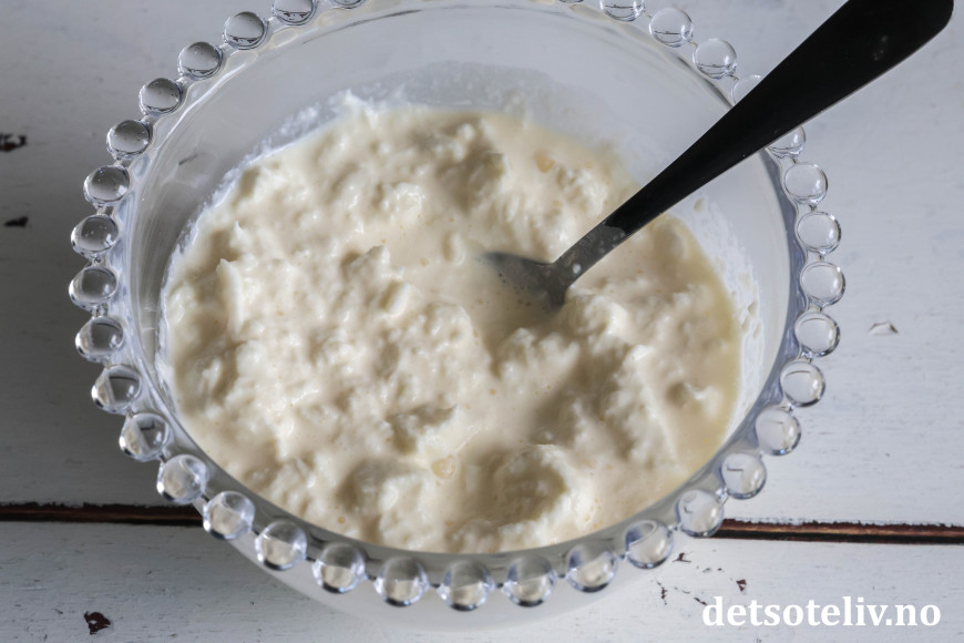 Dekk til skålen med plastfolie og sett i kjøleskapet i minst 1 time, og gjerne lenger.