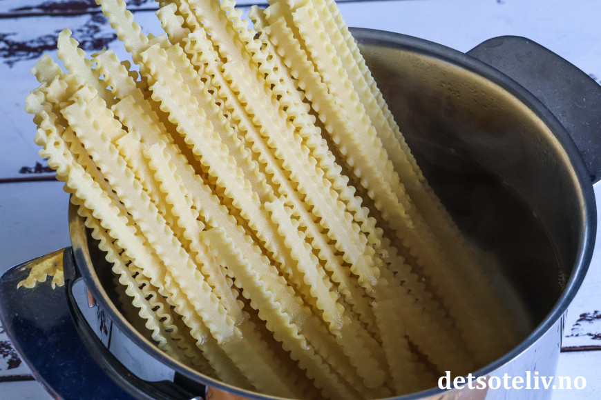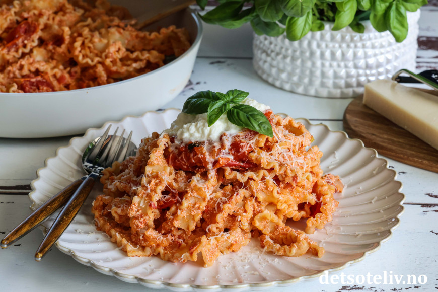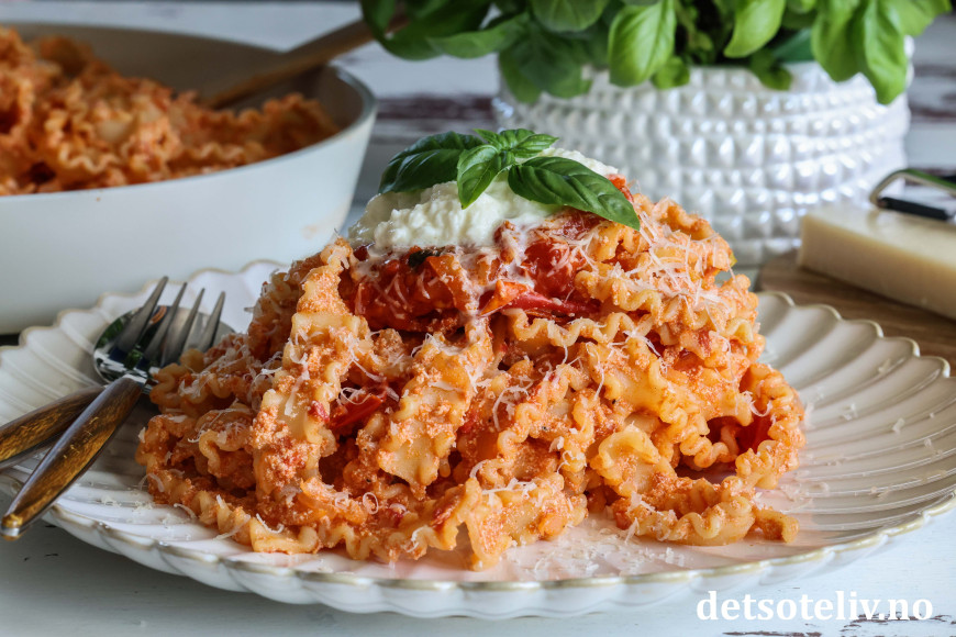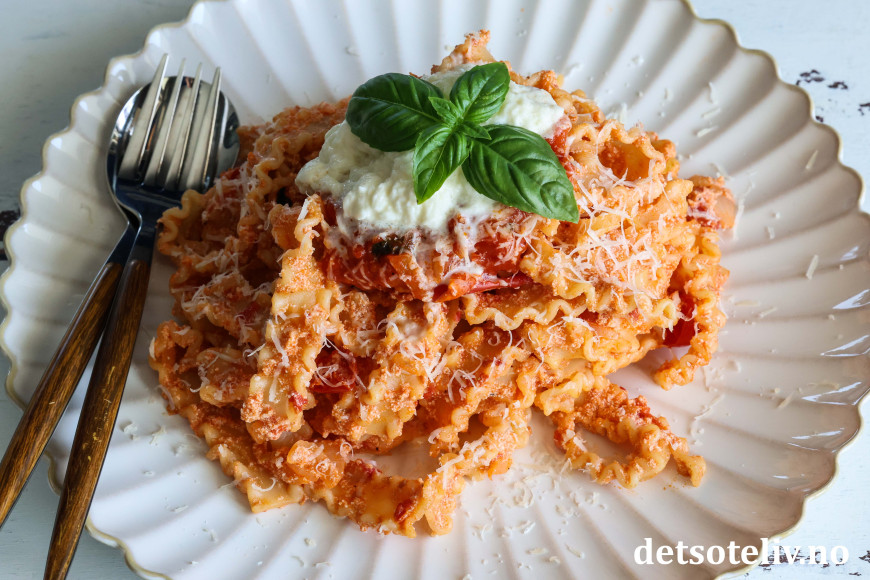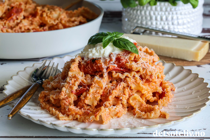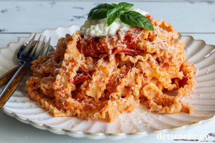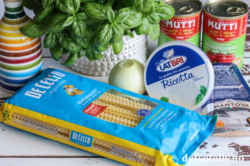 ♥ Mafaldine kalles også for "manfredi" og fås kjøpt i velassorterte matbutikker, eller på nett, se HER. Du kan alternativt bruke annen båndpasta, som tagliatelle, fettuccine eller brede pappardelle.