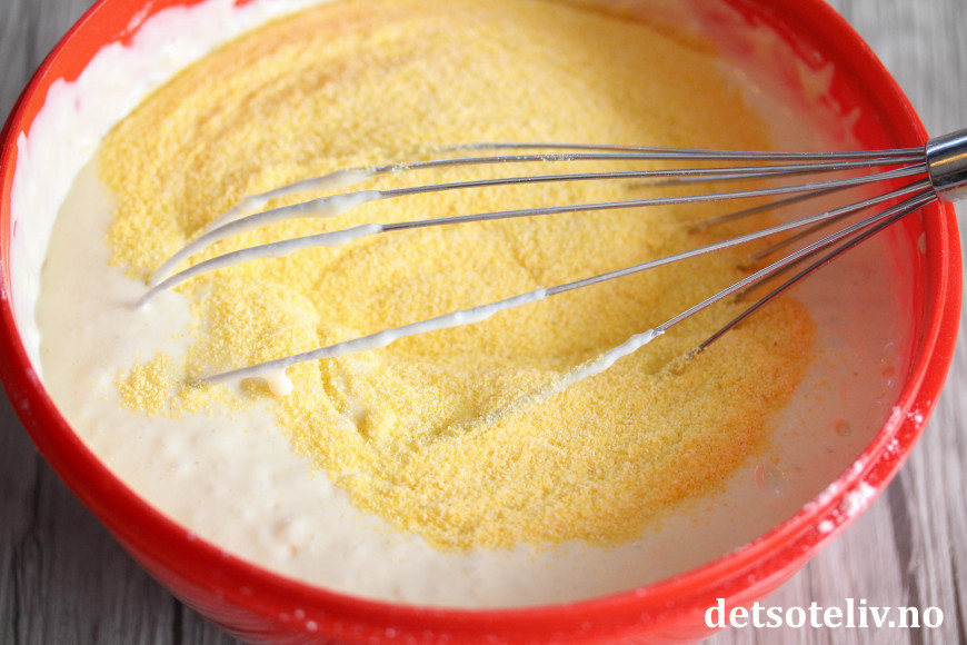 ♥ Maismel må ikke forveksles med maisenna. Sistnevnte er kun stivelse, mens maismelet er gulaktig i fargen. Det finnes maismel med ulike grader av grovhet. Jeg bruker polenta, som er maismel som er malt middels grovt. Polenta fås kjøpt i de fleste velassorterte, norske matbutikker.