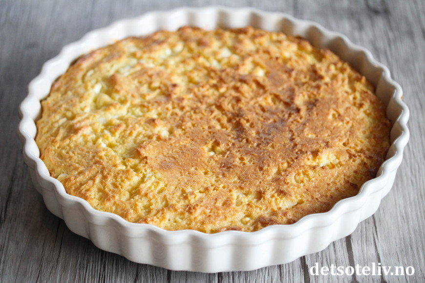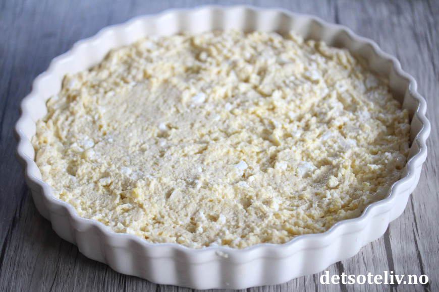 Finn frem en rund, ildfast form (ca 28 cm i diameter). Smør formen lett og hell i deigen.