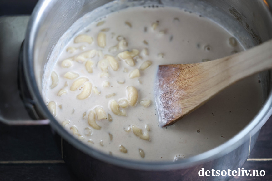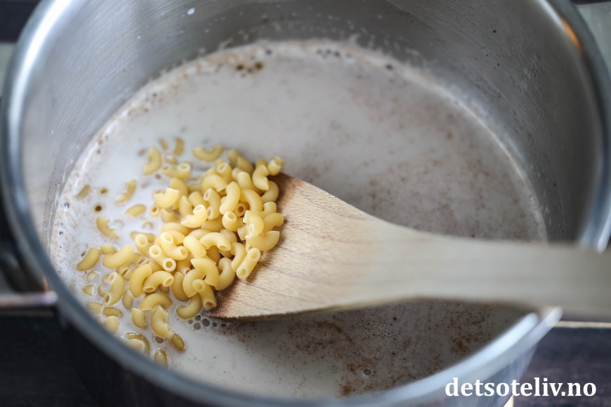 ♥ Merk at makaronisuppen vil tykne hvis den blir stående. Hvis du synes at makaronisuppen er for tykk, kan du spe den ut med 1 - 2 dl mer melk.