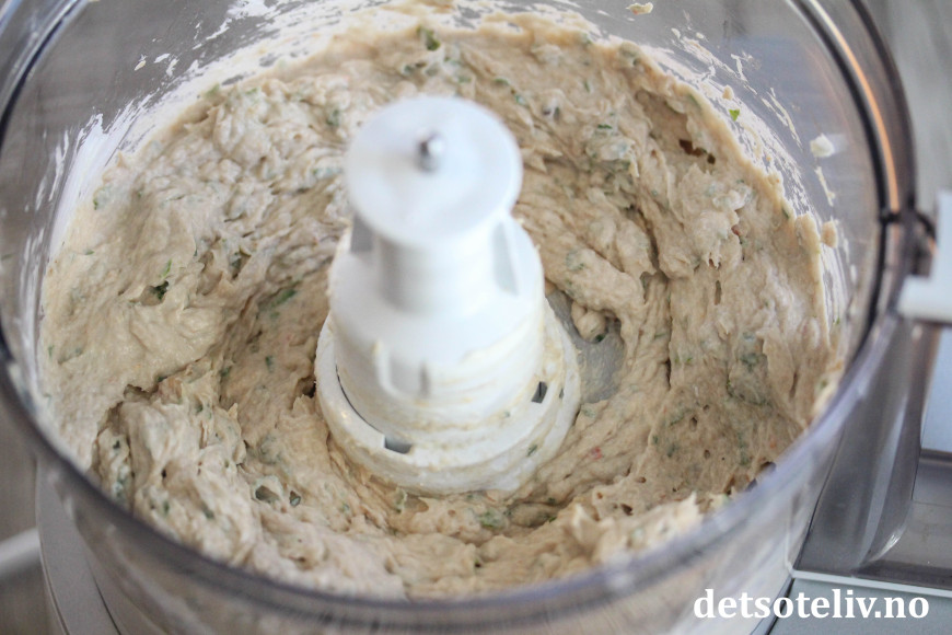 Ha fisken i en food processor sammen med kremost og persille.