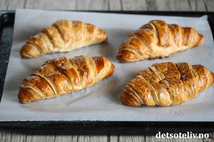 Stek croissantene midt i ovnen ved 180 °C i ca. 12 minutter.