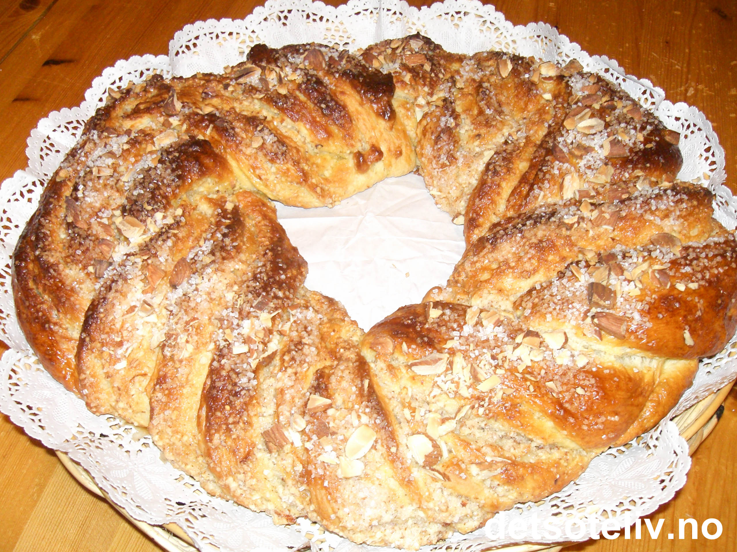 Se også oppskrift på "Selskapskrans", som er fylt med hjemmelaget mandelmasse og eplemos.