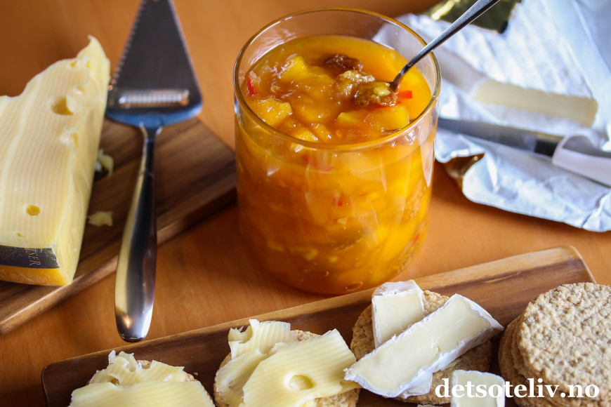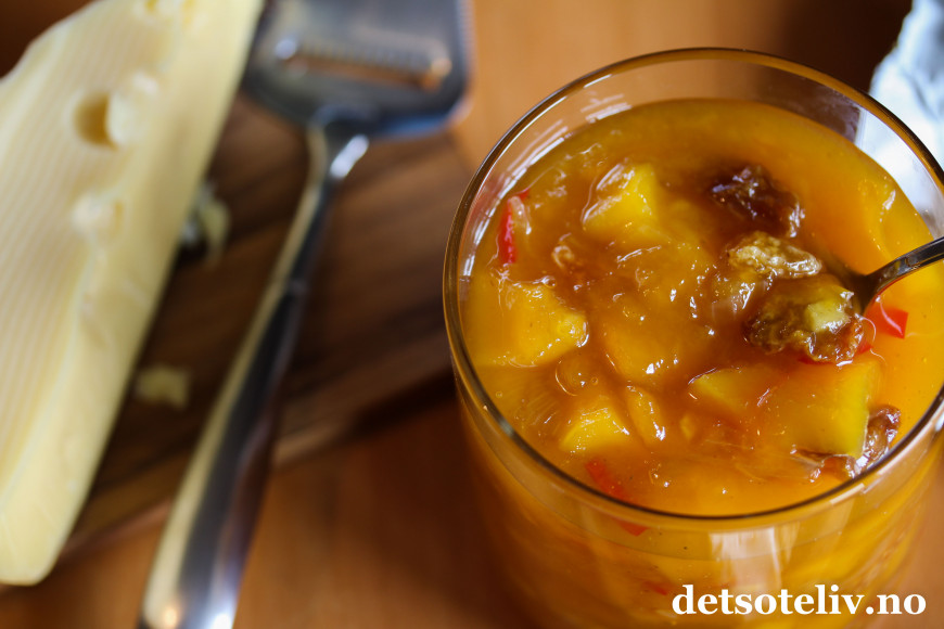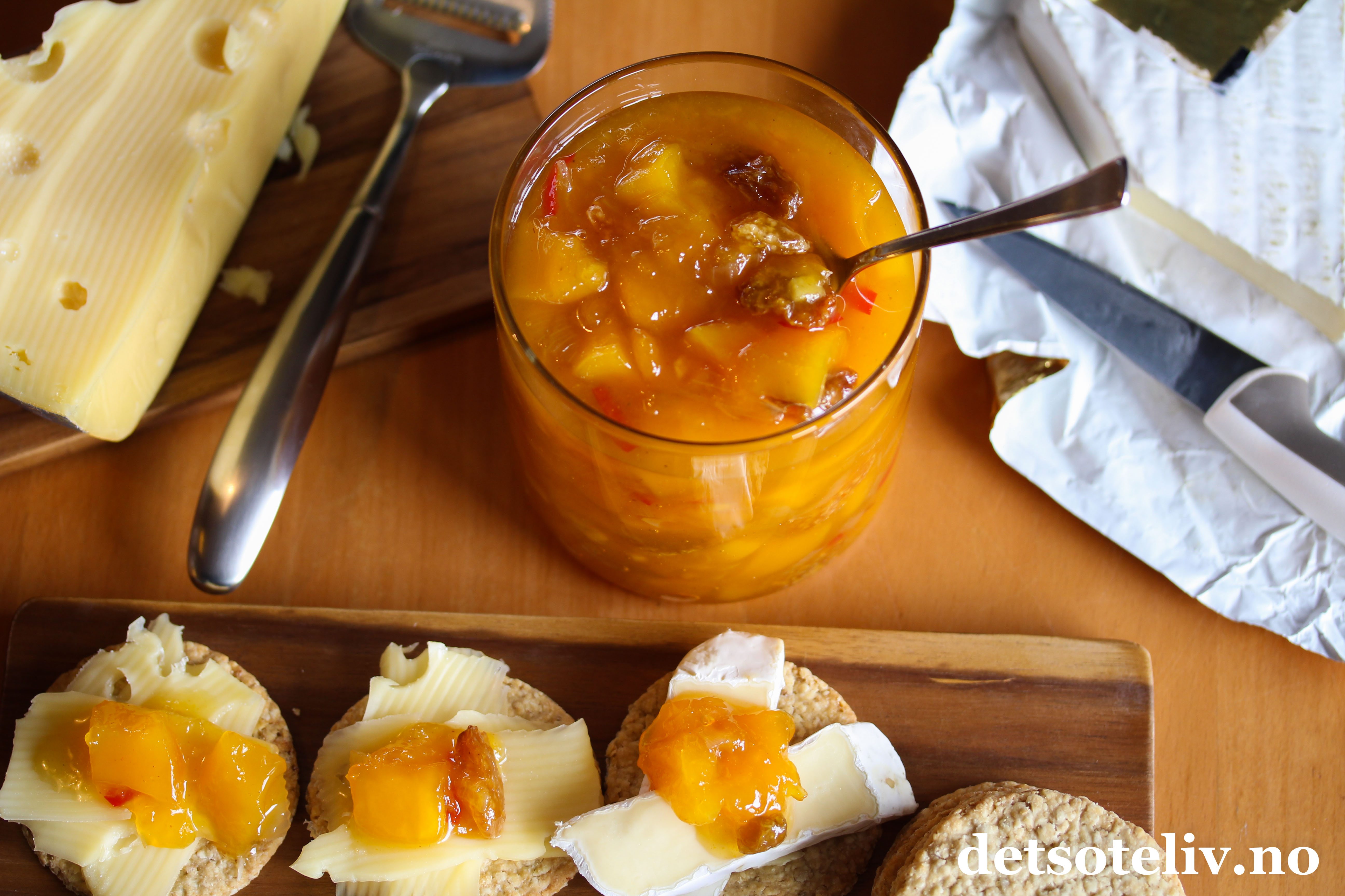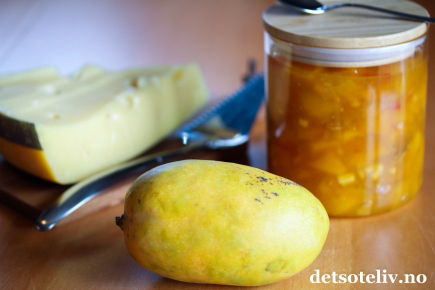 Mangochutney spises vel mest som tilbehør til indisk mat, men denne mangochutneyen her er også helt fantastisk god til ost!