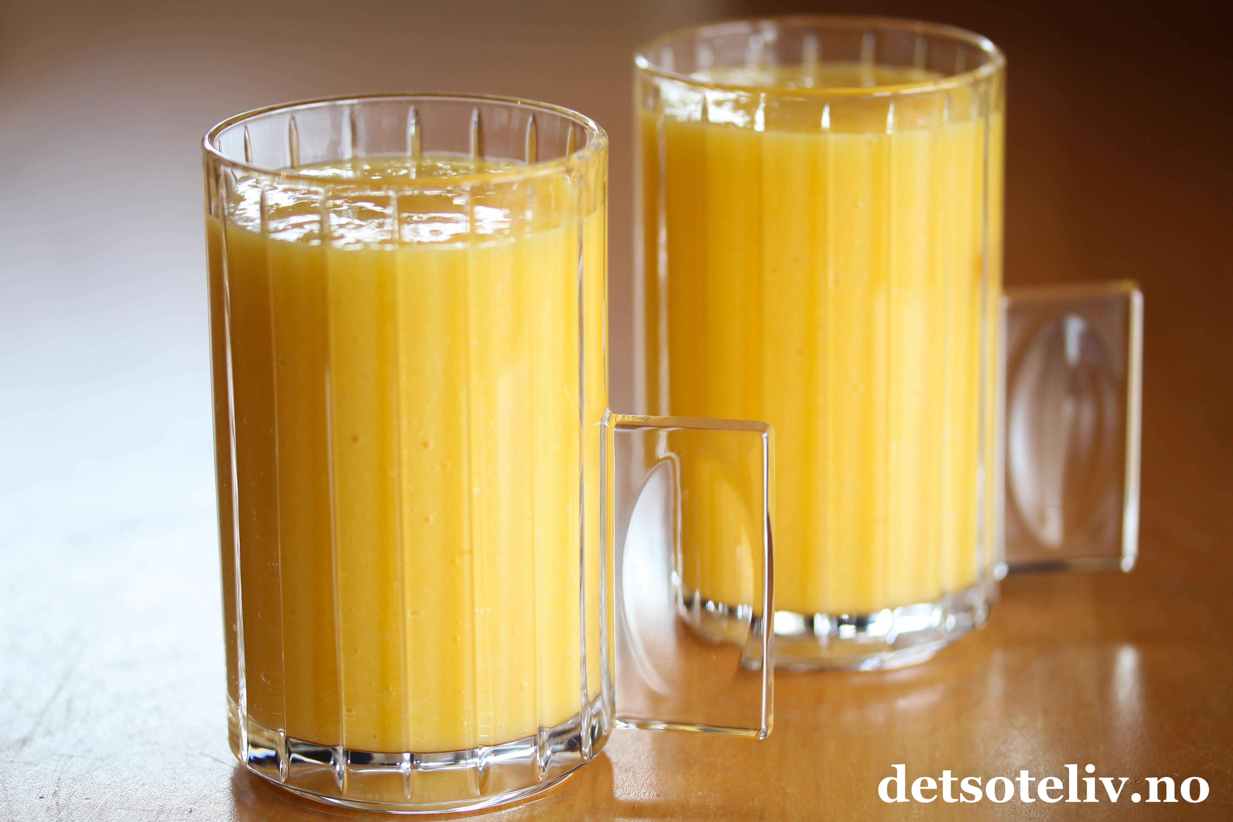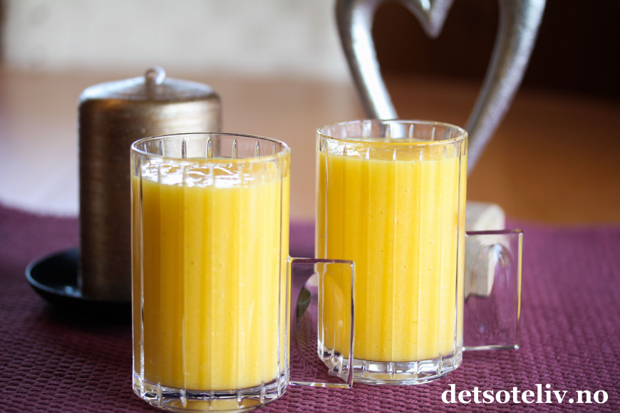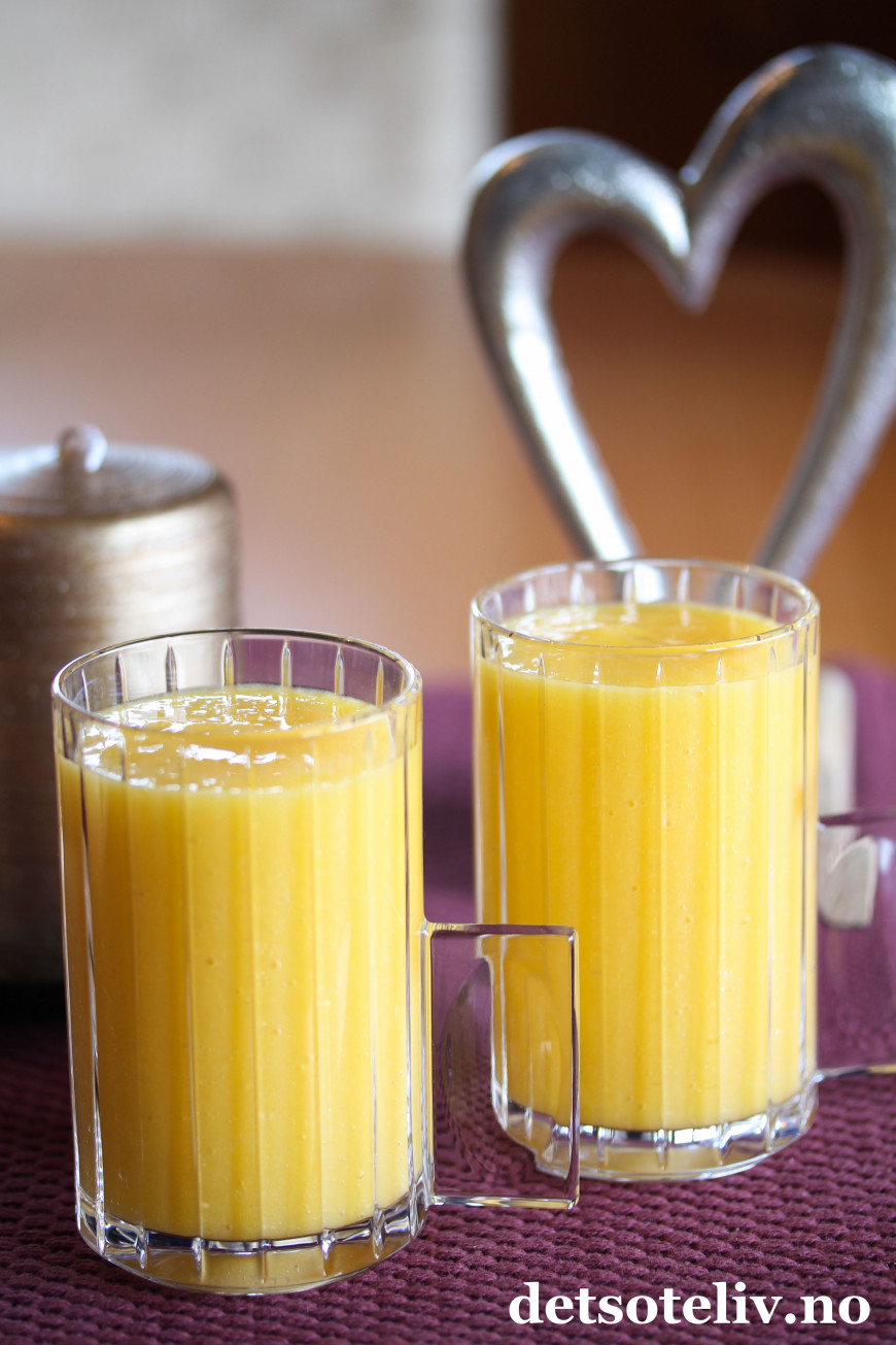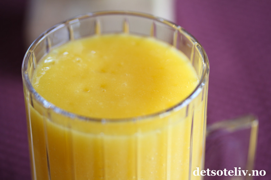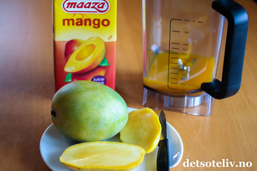 ♥ Se også oppskrift på Mango Lassi, Mango milkshake, Mango- og ananassmoothie, Fersken- og mangosmoothie og Mango- og jordbærsmoothie.