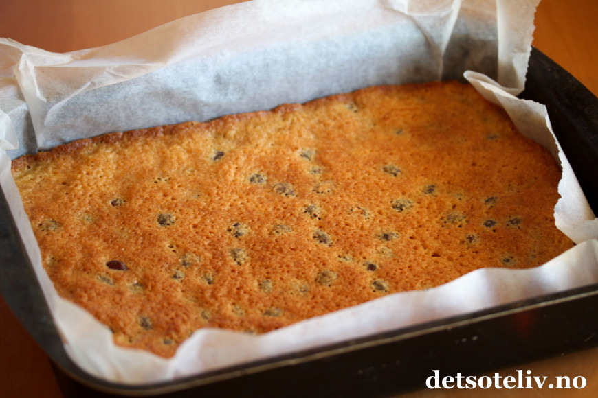 Ha deigen i en liten, bakepapirkledd langpanne (ca 20x30 cm).