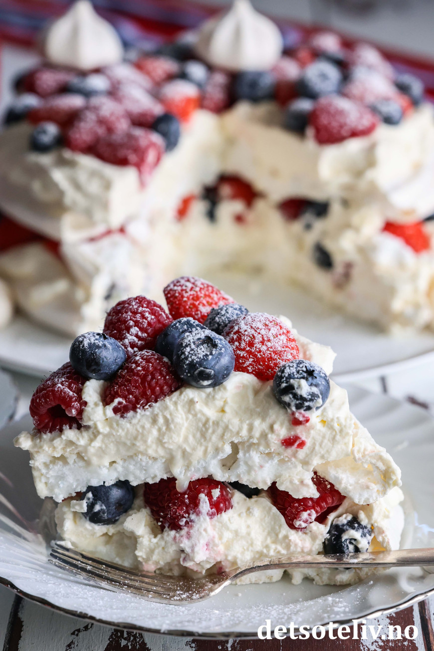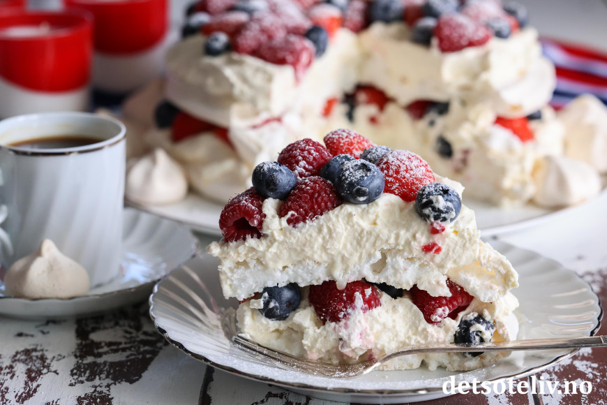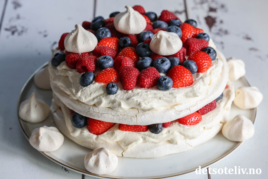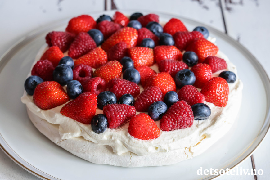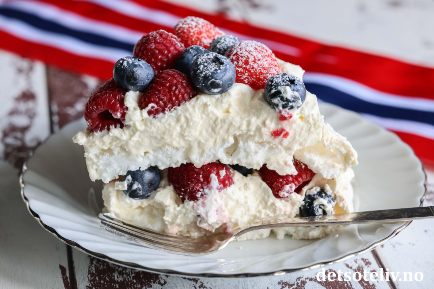 Blandingen av marengs, pisket krem og søte, friske bær smelter på tungen!