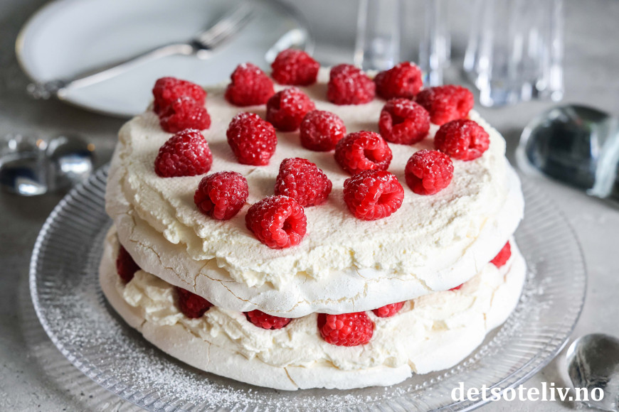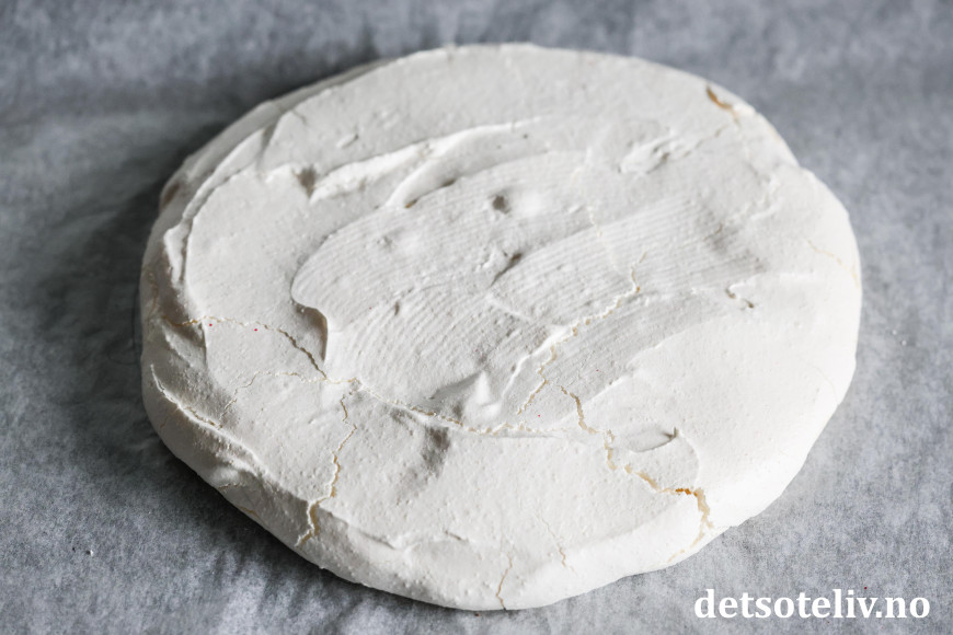 ♥ Marengsbunnene kan lages i forveien og oppbevares tørt frem til serveringsdagen. Kaken bør imidlertid ikke stå for lenge etter at den er fylt med krem og bær, ellers vil den bli for bløt.
