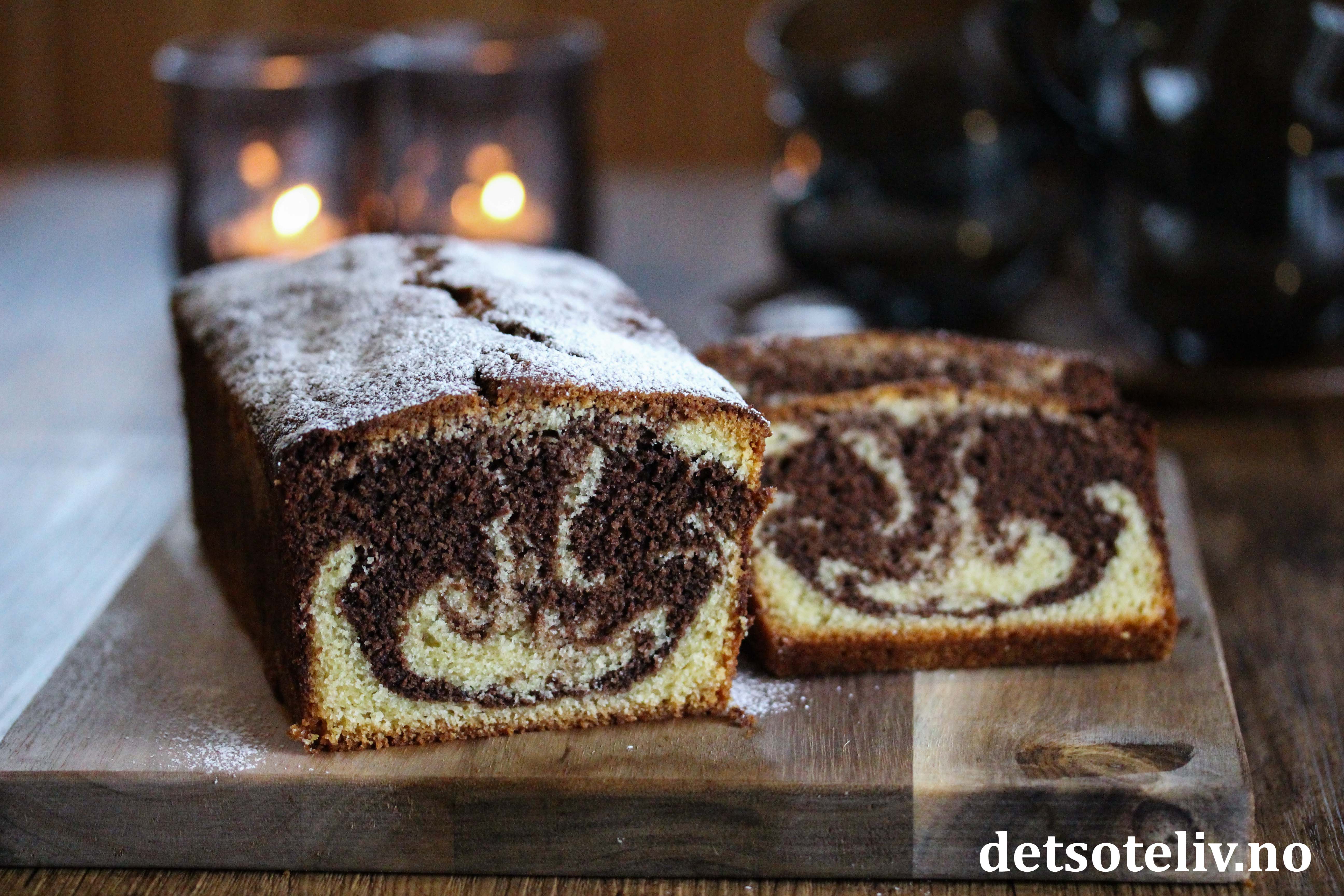 Marmorkake er en kjent og kjær formkake med lange tradisjoner. Her blandes lys vaniljekakedeig og mørk sjokoladekakedeig sammen i formen, og det er alltid like spennende å se hvordan marmor-mønsteret har blitt når man starter å skjære kaken i skiver.