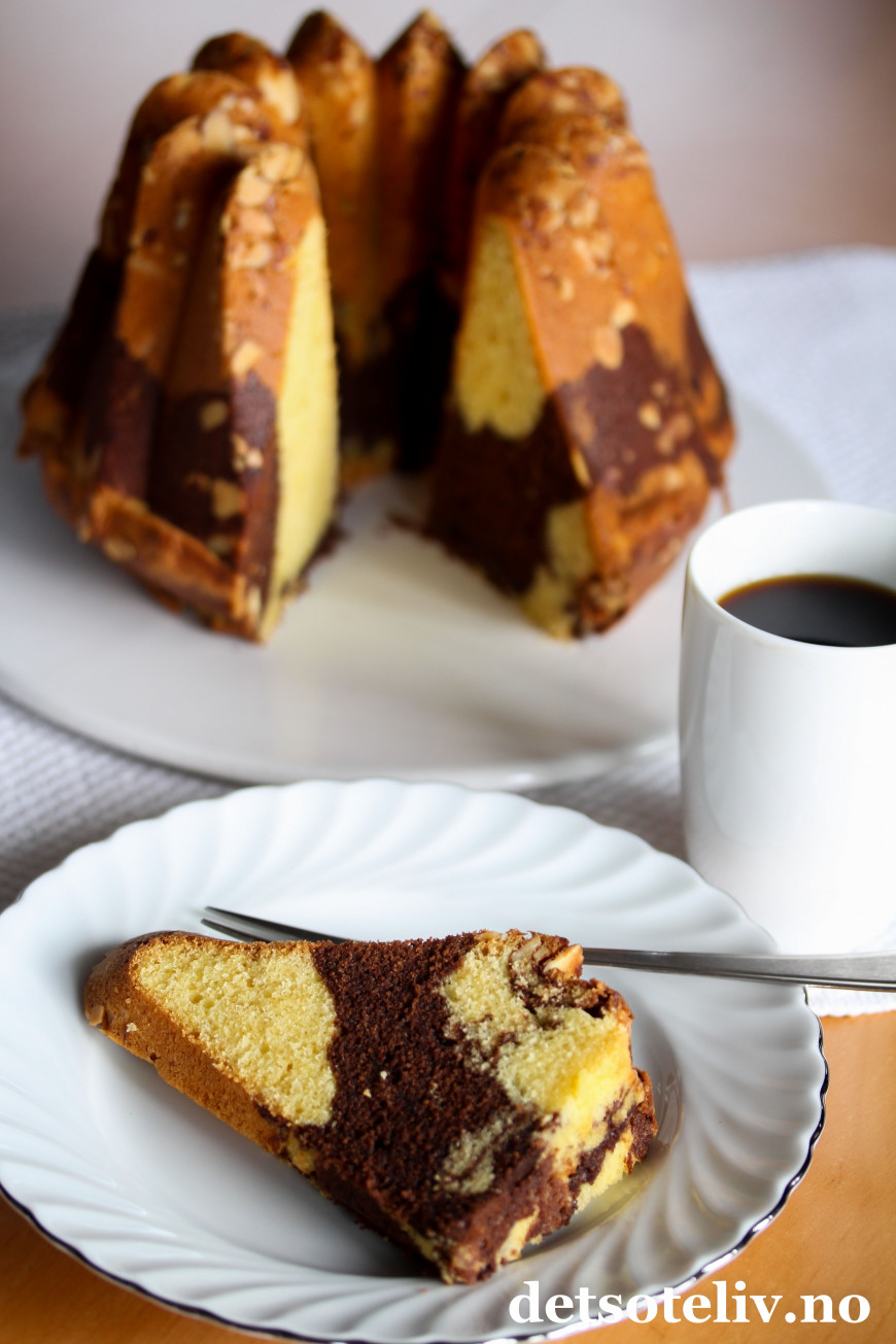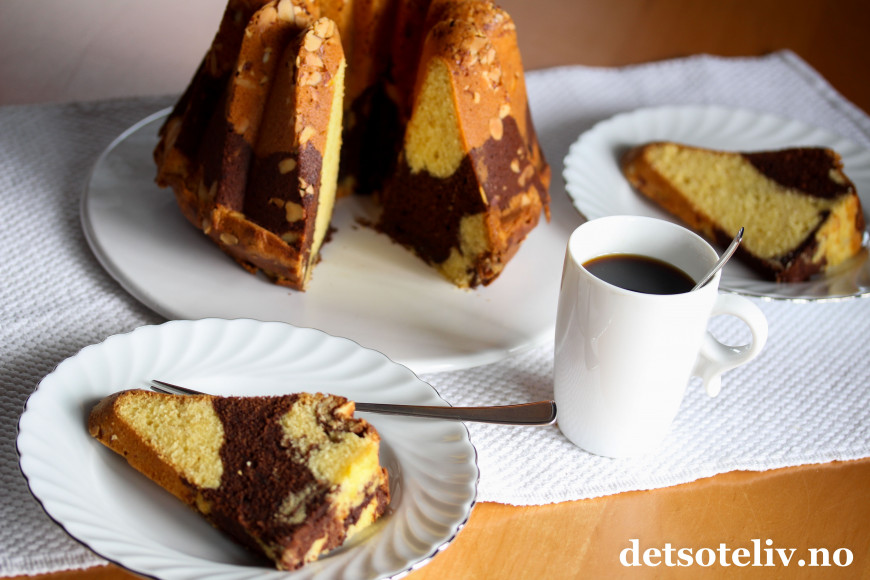 Du finner litt ulike typer marmorkaker her på Det søte liv. Her har jeg gjort en liten vri og tilsatt kaffe i sjokoladedeigen, som setter en nydelig og litt voksen smak på kaken.