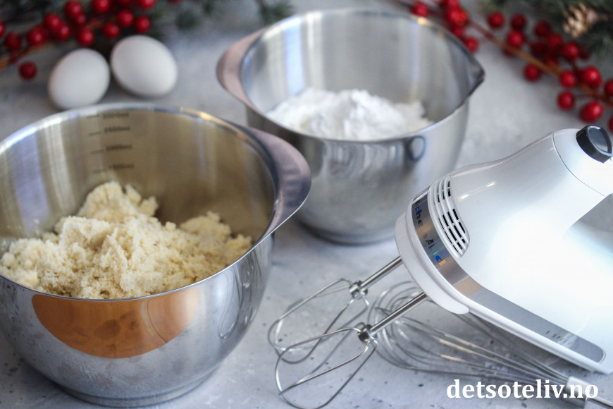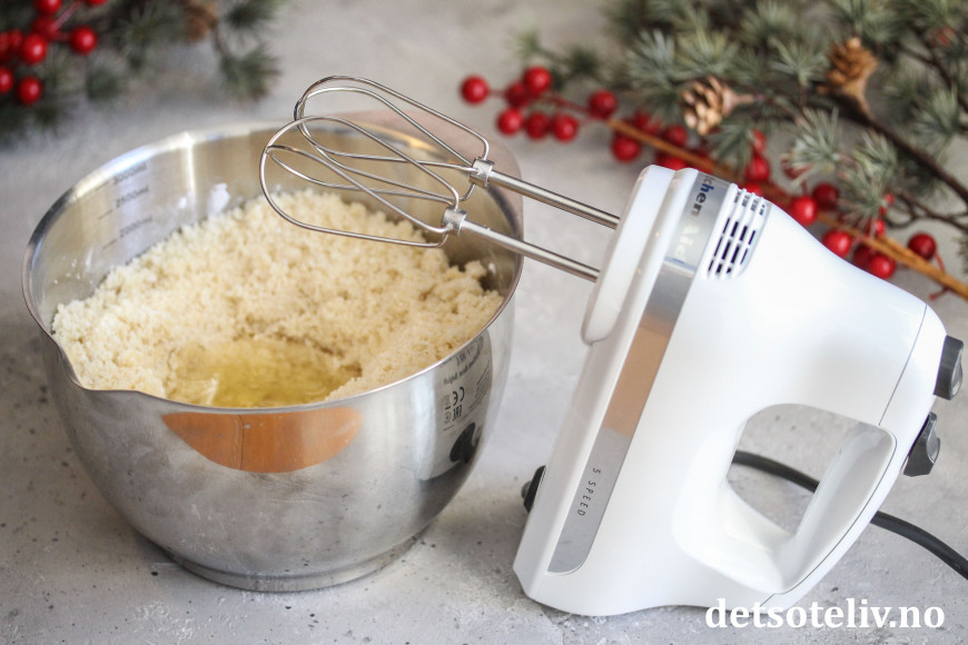 Siden denne porsjonen ikke er så stor, går det fint å bruke håndmikser også. Se link til den jeg bruker her fra KitchenAid i nettbutikken til Bakeren og kokken HER.