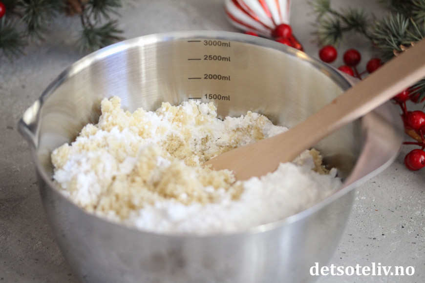 Jeg har her tatt utgangspunkt i min beste oppskrift på Hjemmelaget marsipan, men har her laget halv porsjon.