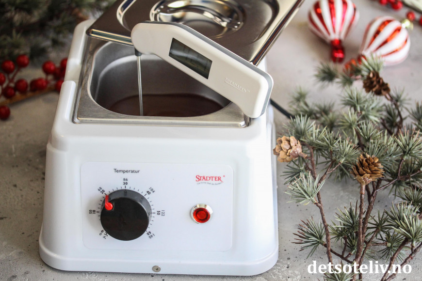 Se link til super elektrisk sjokoladesmelter i nettbutikken til Bakeren og kokken HER og til termometer HER.