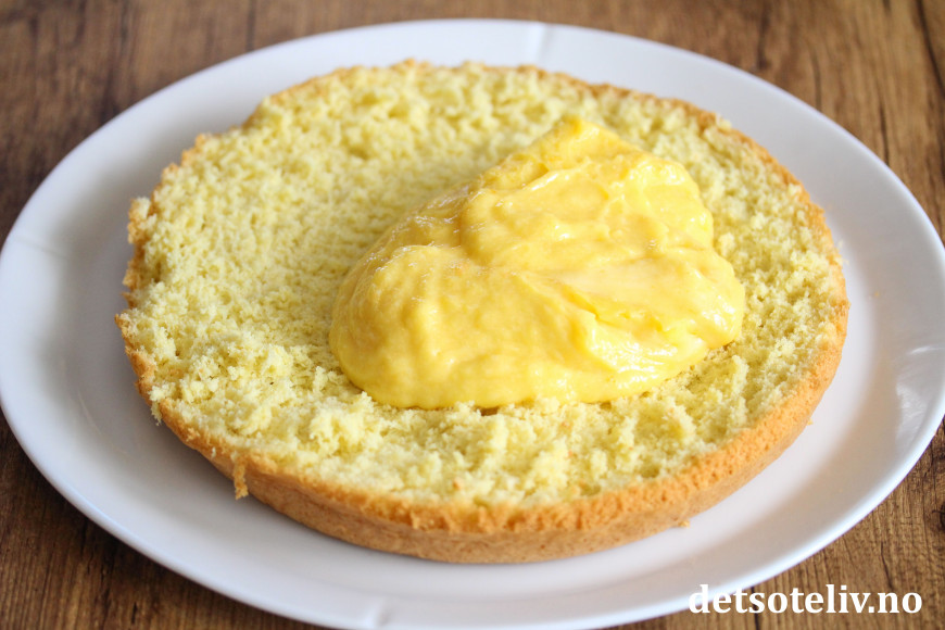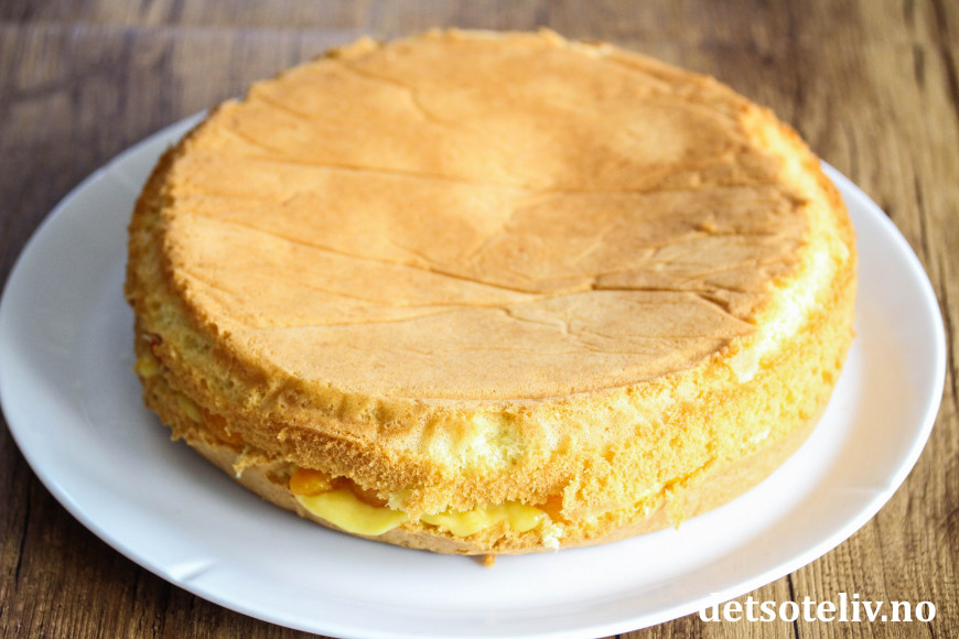 Fyll kaken med et godt lag appelsinkrem.