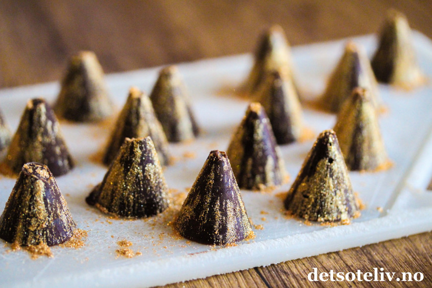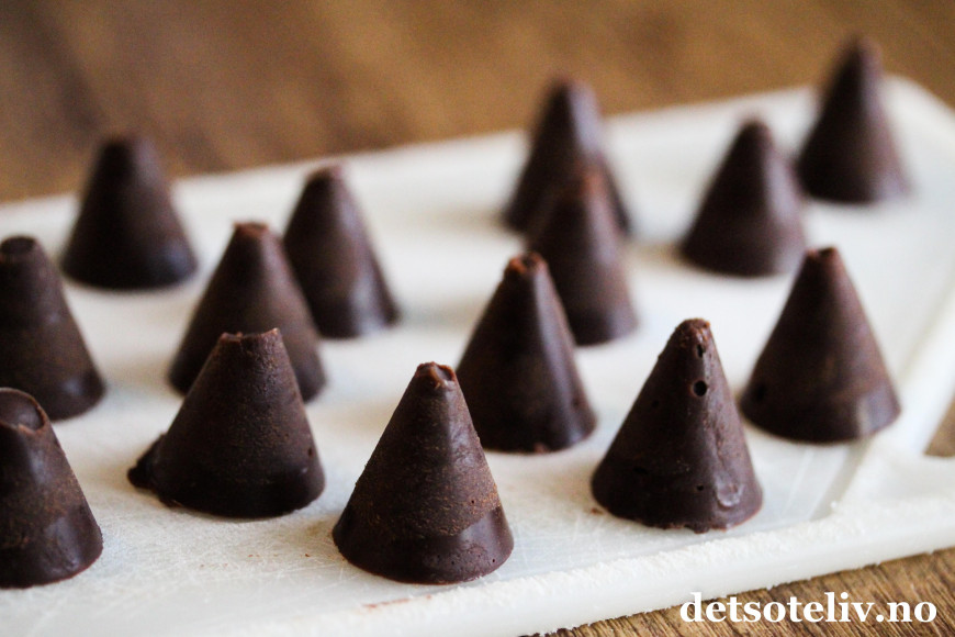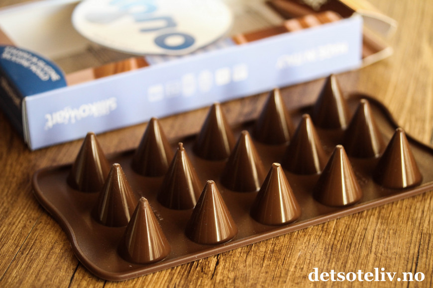 Null problem å få konfekten ut av formen når formen er laget av silikon siden du da bare kan dytte ut konfekten.