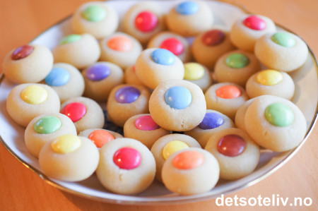 Trykk en Smarties, Non Stop eller tilsvarende i hver kule.