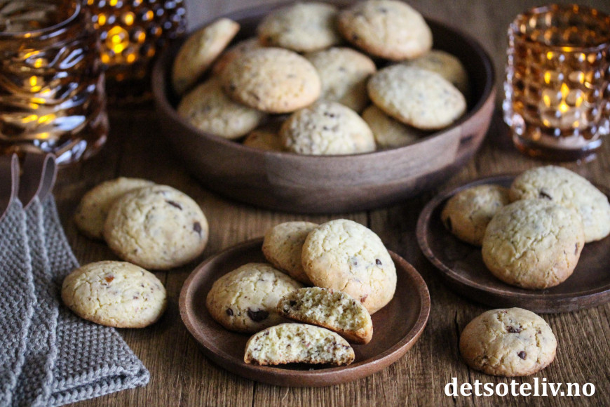 Maryland Cookies er sprø og lekre småkaker med hakket sjokolade og mandler.