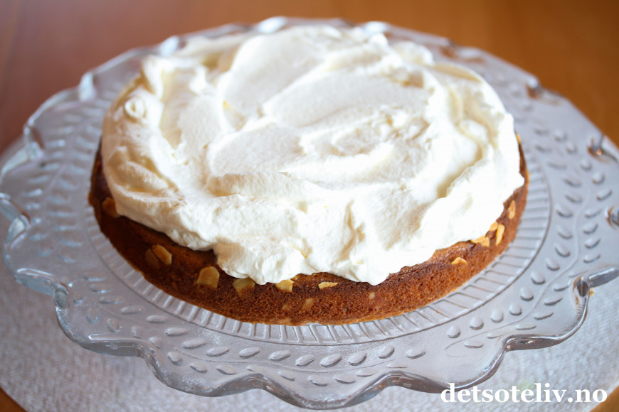 ♥ Det er viktig at kaken er helt kald før du dekker den med pisket krem, ellers vil kremen smelte og bli rennende.