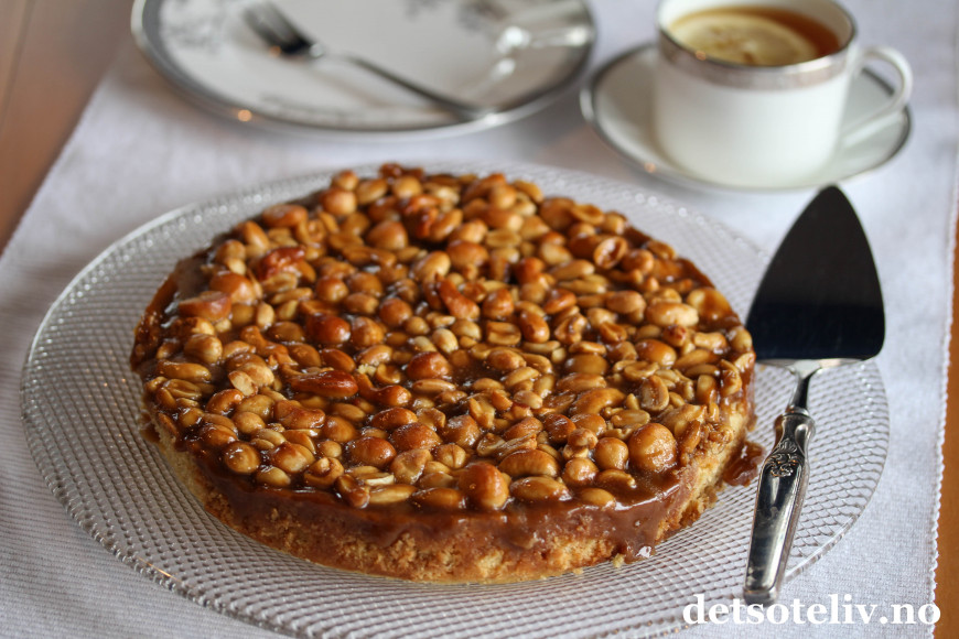 Dette er en deilig kake for nøtteelskere som er hentet fra nøttekapitlet i min nyeste kakebok "Kaker for enhver smak"! Kaken består av mørdeig som fylles en mykt og nydelig mandelfyll. På toppen dekkes kaken med lokk av nøtter og karamell.