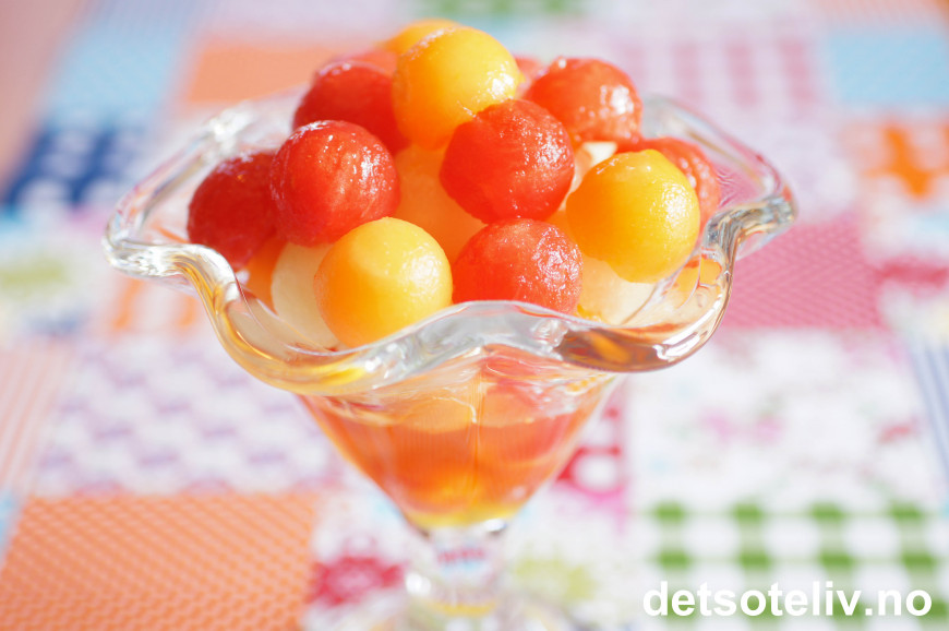 Melonsalat til voksne kan godt tilsettes en skvett med likør att'på:-)