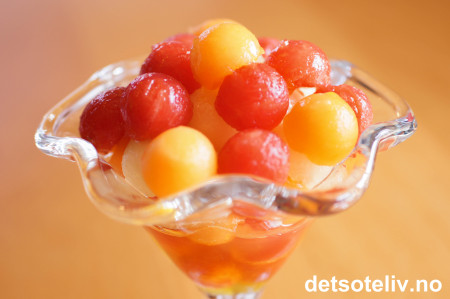 ♥ Melonkuler lager man med et spesielt redskap som heter Parisiennejern (ser ut som en veldig liten iskremskje). Fås kjøpt i velassorterte kjøkkenutstyrsbutikker.