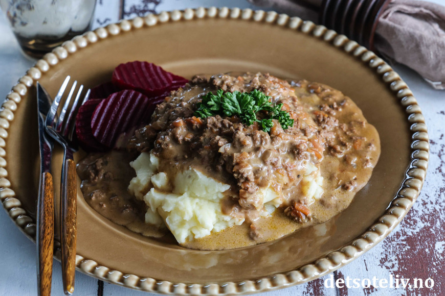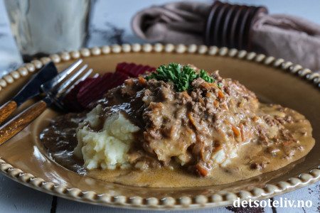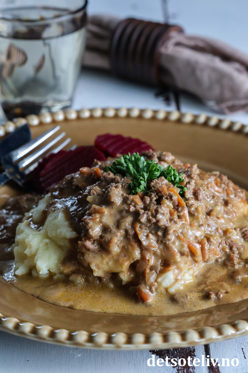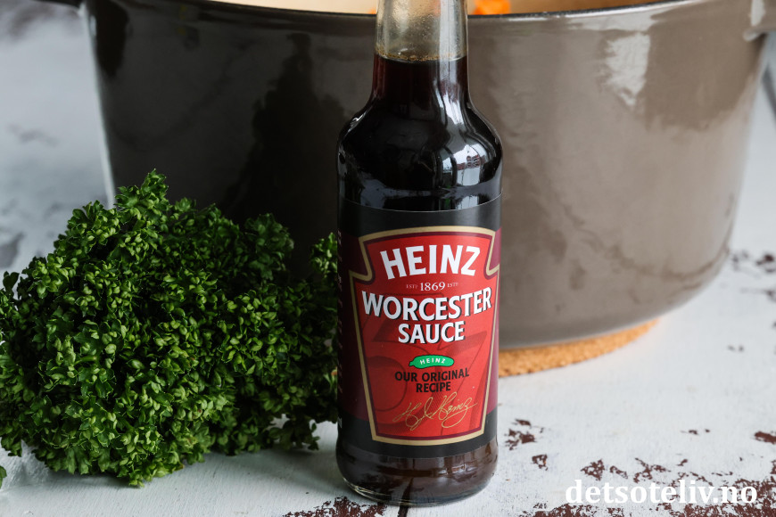 ♥ Worcestersauce (også kalt Worcestershire sauce) gir denne retten en særpreget smak. Du kan redusere mengden eller eventuelt bytte ut med et par skjeer tomatketchup for en mildere smak på sausen.