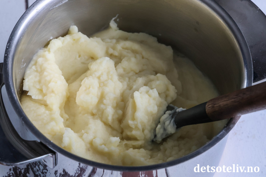 Lag potetmosen mens kjøttdeiggryten småkoker.