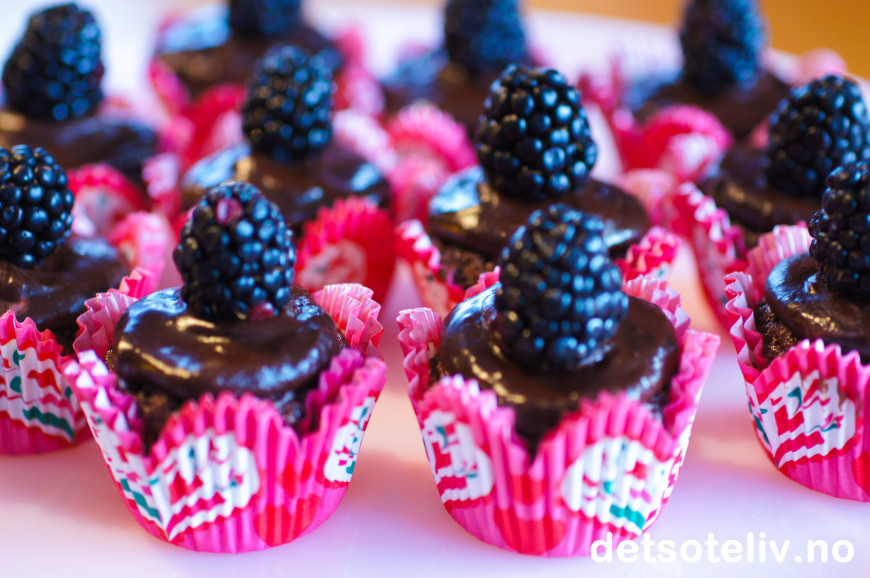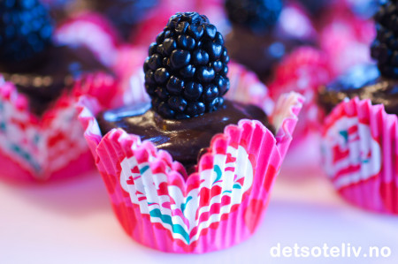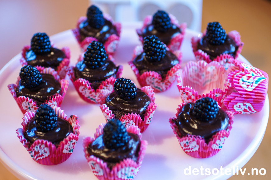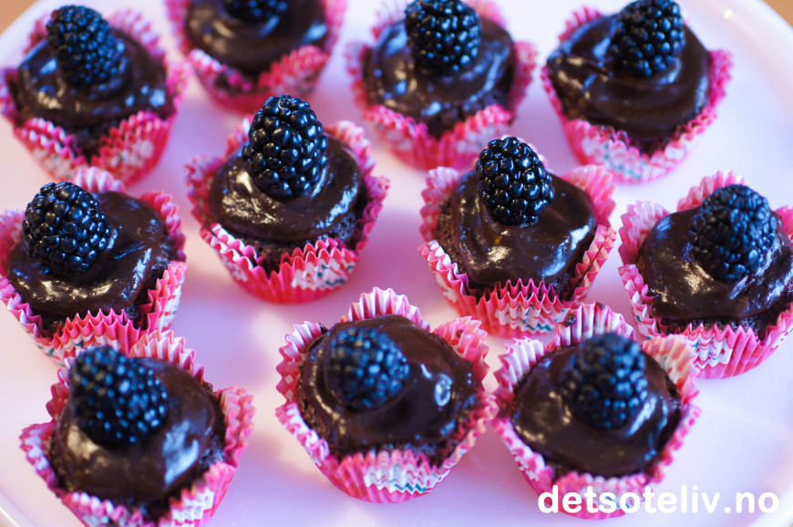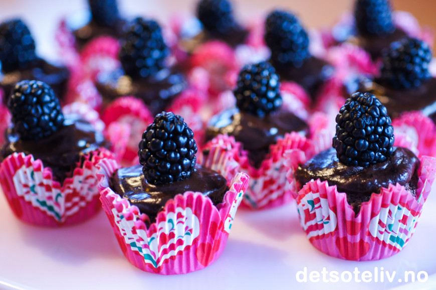 Dette er nydelige små minimuffins med smak av sjokolade og bjørnebær.