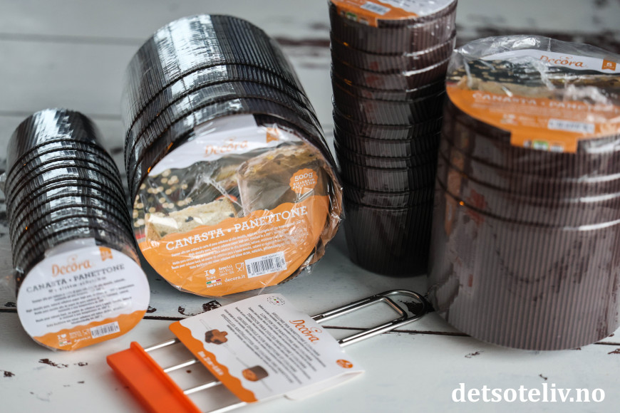 Det viktigste kjennetegnet på en Panettone er den høye, flotte fasongen! Du kan tilpasse høyden til vanlige springformer med bakepapir, men det er enda kjekkere å bruke spesialtilpassede panettoneformer. Slike finner du flere varianter av i den flotte nettbutikken til Slikkepott.no.