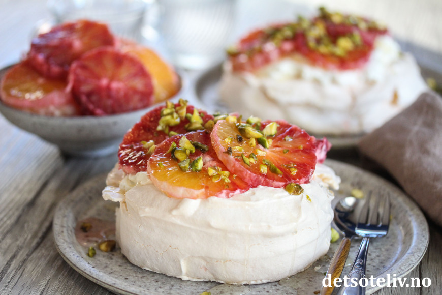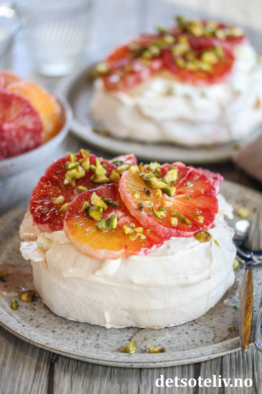 ♥ I stedet for porsjonskaker, kan du lage en stor rund Pavlova eller en Pavlovakrans. Øk da steketiden fra 30 minutter til 1 time, og la marengskaken deretter stå i ovnen til den har blitt kald.