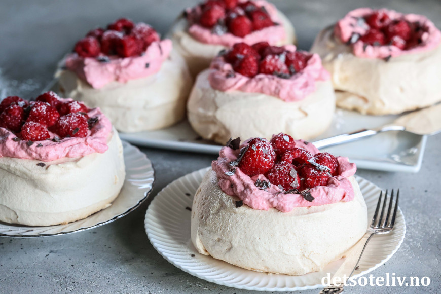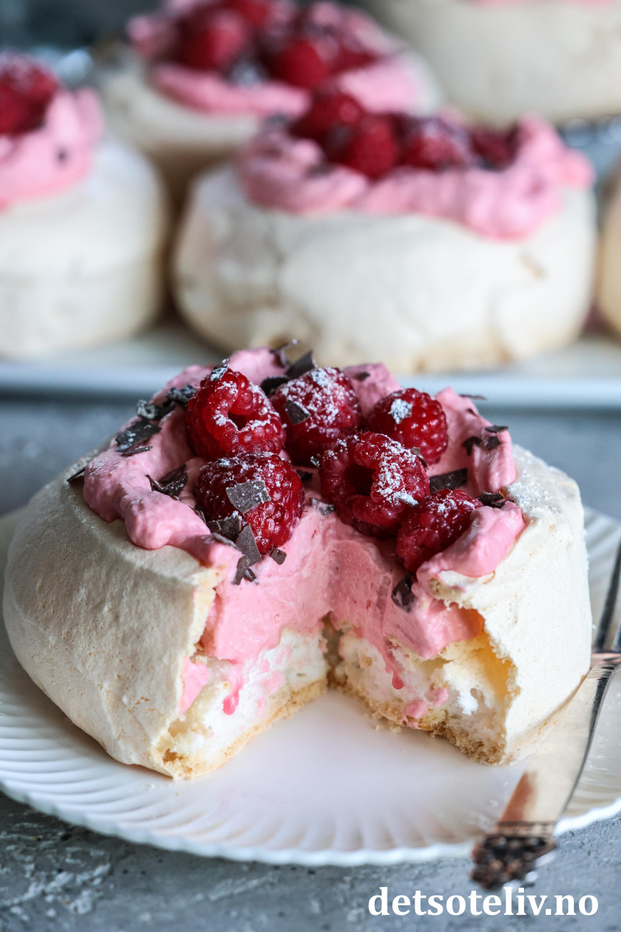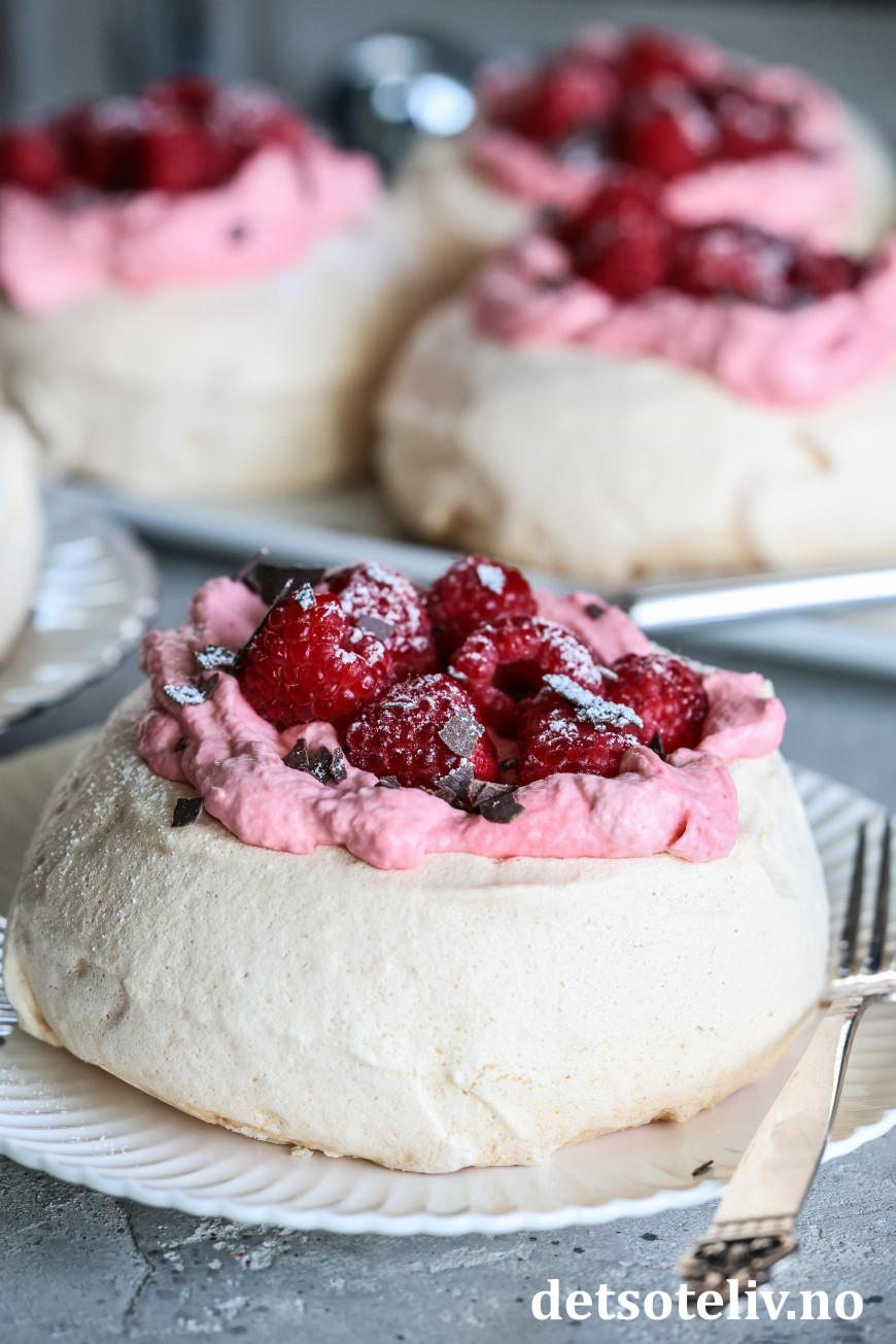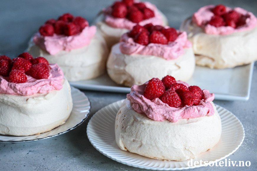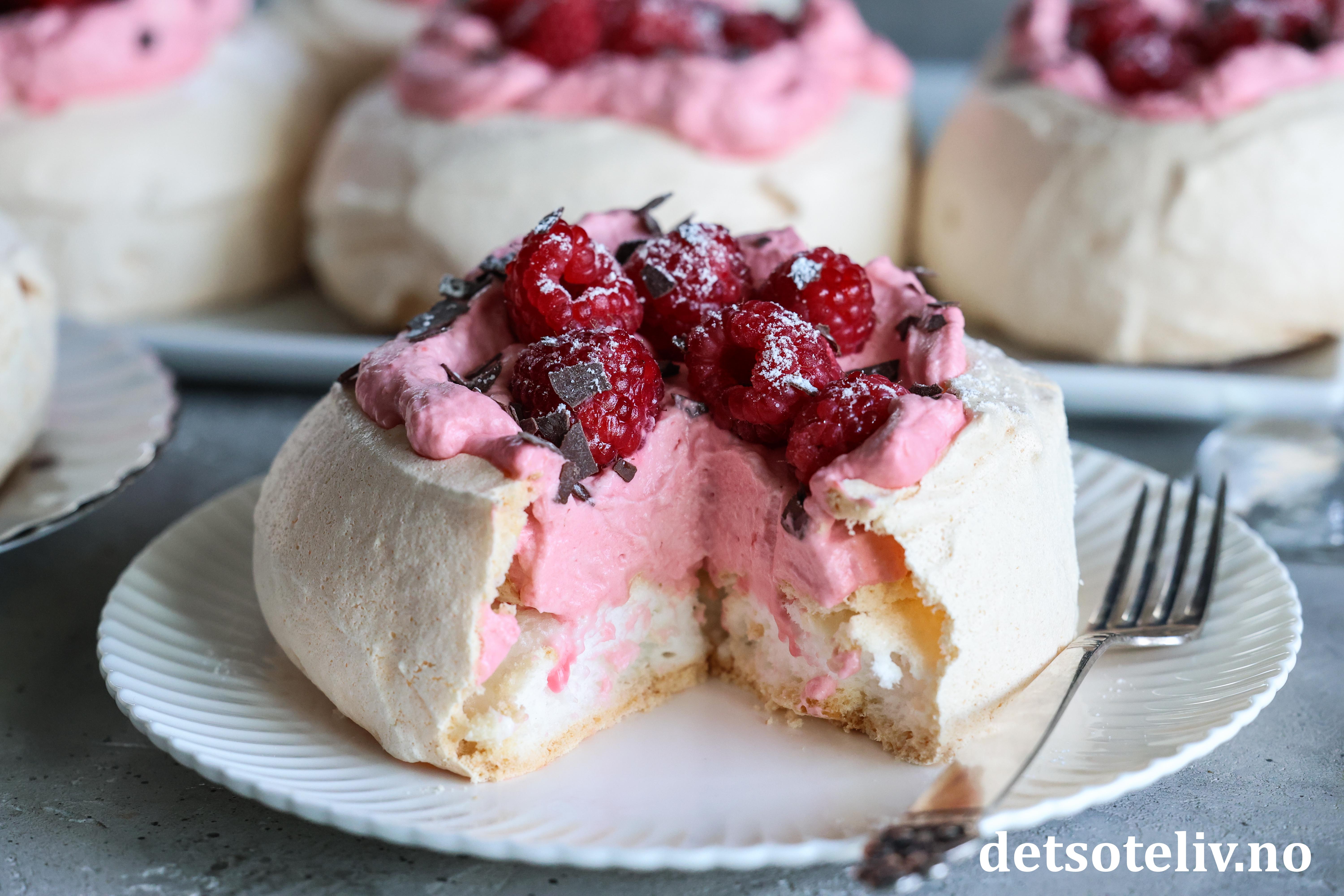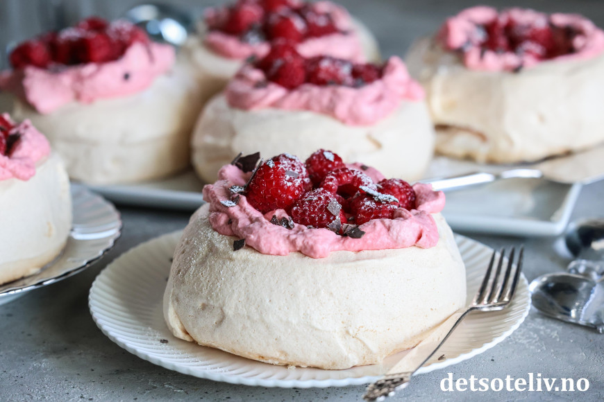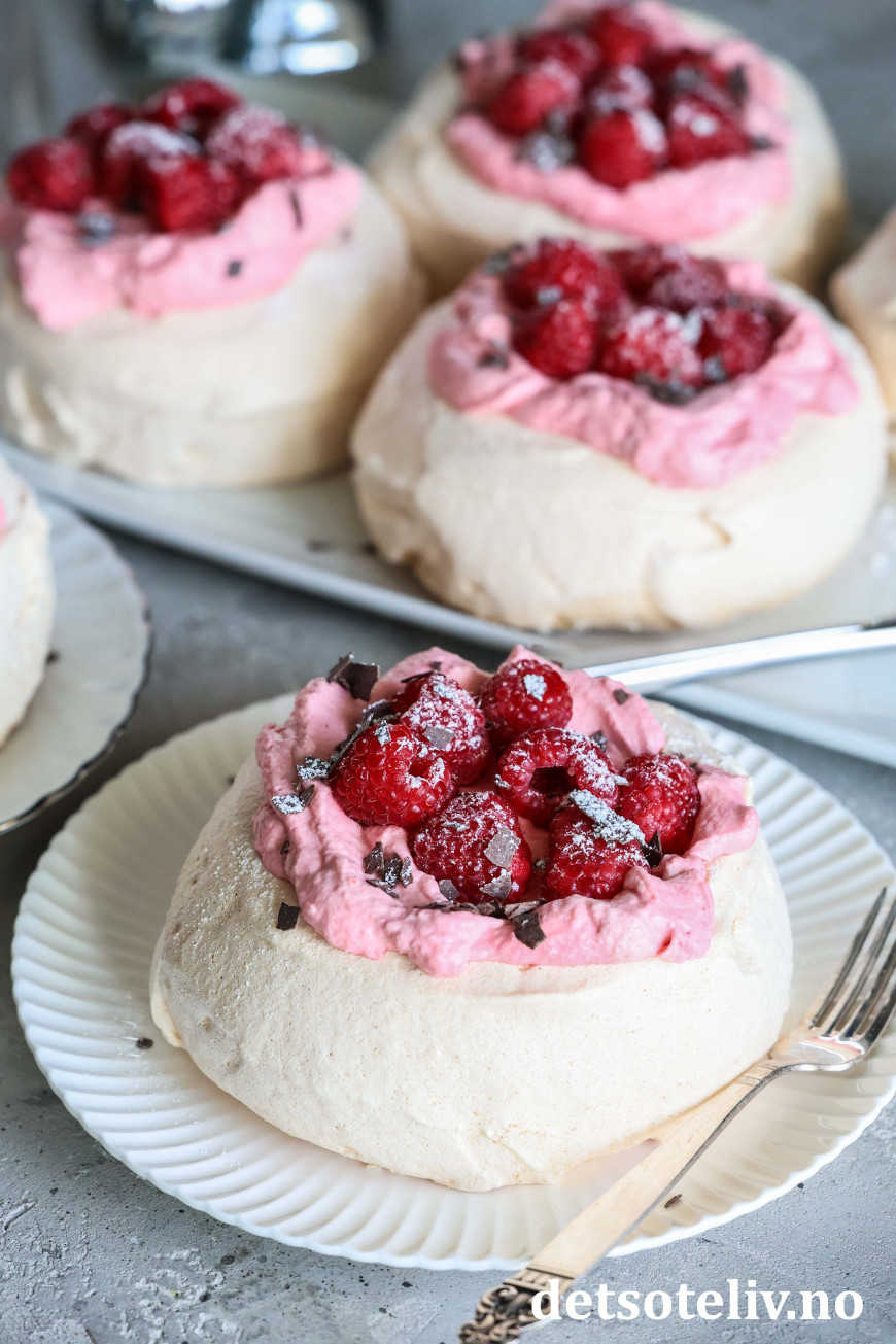 Minipavlova er supre å servere hvis du skal ha gjester fordi marengskakene kan lages flere dager i forveien. Så trenger du bare å toppe med krem og pynt på serveringsdagen. 😊