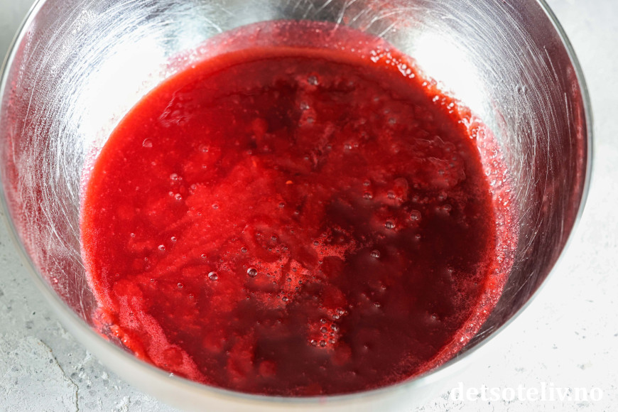 Du vil dermed få en deilig bringebærkrem med herlig rosafarge! 😍